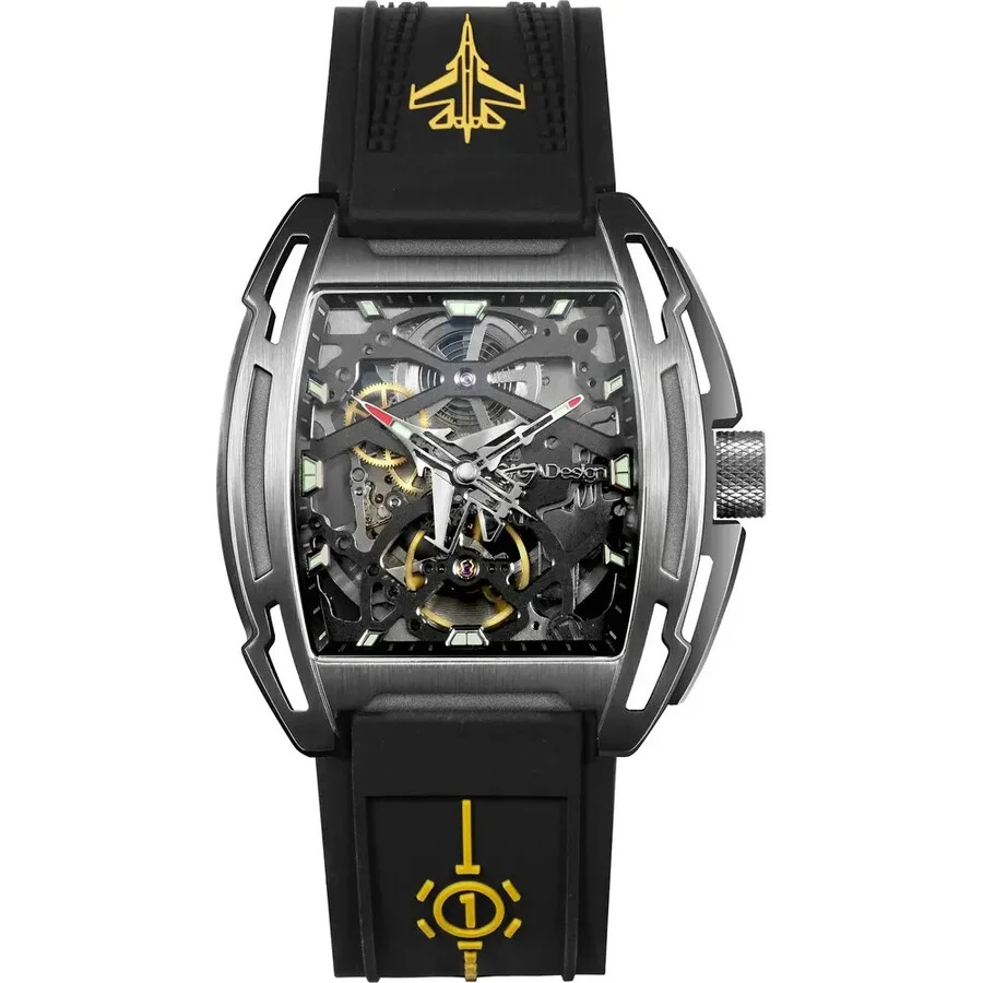 Silver-tone 316L stainless steel case with a black silicone strap. Fixed silver-tone stainless steel bezel. Grey dial with silver-tone hands. Dial Type: Analog. Luminescent hands and markers. Ciga Design Calibre CD-01 automatic movement with a 40-hour power reserve. Scratch resistant sapphire crystal. Pull / push crown. Transparent see through case back. Tonneau case shape, case size: 40.8 mm, case thickness: 12.3 mm. Band width: 22 mm. Water resistant at 30 meters / 100 feet. Functions: hour, minute. Aircraft Carrier Series. Sport watch style. Ciga Design Z-Series Aircraft Carrier Automatic Grey Dial Men's Watch Z061-IPTI-W5BK. GENERAL Box Type: Original Box CASE Case Diameter: 40.8 mm Case Thickness: 12.3 mm Case Material: 316L Stainless Steel Case Shape: Tonneau Case Back: Transparent See Through BAND Band Material: Silicone Band Type: Strap Band Color: Black Band Width: 22 mm DIAL Dial Color: Grey Type: Analog Crystal: Scratch Resistant Sapphire Hands: Silver-tone Luminiscence: Hands and Markers Bezel: Fixed Bezel Color: Silver-tone Bezel Material: Stainless Steel Crown: Pull / Push INFORMATION Brand: Ciga Design Series: Aircraft Carrier Collection Name: Aircraft Carrier Gender: Mens Model: Z061-IPTI-W5BK Movement: Automatic Engine: Ciga Design Calibre CD-01 Power Reserve: 40 hours FEATURES Water Resistance: 30 meters / 100 feet Functions: Hour, Minute Watch Features: Stainless Steel, Analog ADDITIONAL INFO Watch Style: Sport UPC Code: 6971311241601 Jomashop Sku: Z-CA2XP Department: Watches