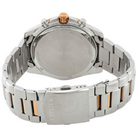 Silver-tone stainless steel case with a two-tone (silver-tone and rose gold ip) stainless steel bracelet. Fixed rose gold IP stainless steel bezel. Rose gold-tone dial with rose gold-tone hands and index hour markers. Arabic numeral minute markers (at 5 minute intervals). Dial Type: Analog. Luminescent hands and markers. Date display between 4 and 5 o'clock position. Chronograph - three sub-dials displaying: 60 second, 60 minute and 24 hour. Citizen Caliber 0520 quartz movement. Scratch resistant mineral crystal. Solid case back. Round case shape, case size: 46.4 mm. Fold over clasp with a safety release. Water resistant at 100 meters / 330 feet. Functions: chronograph, date, hour, minute, second. Sport watch style. Watch label: Japan Movt. Citizen Chronograph Quartz Rose Gold Dial Men's Watch AN8204-59X. INFORMATION Brand: Citizen Gender: Mens Model: AN8204-59X Watch Label: Japan Movt Movement: Quartz Engine: Citizen Caliber 0520 CASE Case Size: 46.4 mm Case Material: Stainless Steel Case Shape: Round Case Back: Solid BAND Band Material: Stainless Steel Band Type: Bracelet Band Color: Two-tone (Silver-tone and Rose Gold IP) Clasp: Fold Over with Safety Release DIAL Dial Color: Rose Gold-tone Type: Analog Crystal: Scratch Resistant Mineral Hands: Rose Gold-tone Dial Markers: Index Second Markers: Arabic Numeral Minute Markers (at 5 minute intervals) Sub Dials: Three - 60 Second, 60 Minute and 24 Hour Luminiscence: Hands and Markers Bezel: Fixed Bezel Color: Rose Gold IP Bezel Material: Stainless Steel FEATURES Water Resistance: 100 meters / 330 feet Calendar: Date display between 4 and 5 o'clock position Functions: Chronograph, Date, Hour, Minute, Second Watch Features: Chronograph, Stainless Steel, Gold, Analog ADDITIONAL INFO Watch Style: Sport Warranty: 5 Year Jomashop Warranty UPC Code: 4974374335692 Jomashop Sku: CZAN8204-59X Department: Watches Category: Watches