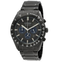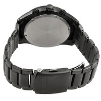 Black stainless steel case and bracelet. Fixed tachymeter scale black stainless steel bezel. Black dial with silver-tone hands and index hour markers. Minute markers around the outer rim. Dial Type: Analog. Date display between 4 and 5 o'clock position. Chronograph - three sub-dials displaying: 60 second, 60 minute and 24 hour. Citizen Caliber Eco-Drive B620 eco-drive movement. Scratch resistant sapphire crystal. Solid case back. Round case shape, case size: 43 mm, case thickness: 11.3 mm. Deployment with push button release clasp. Water resistant at 100 meters / 330 feet. Functions: chronograph, date, hour, minute, second, solar-powered. Eco-drive Series. Sport watch style. Watch label: Japan Movt. Citizen Eco-Drive Chronograph Black Dial Men's Watch CA4677-50H. GENERAL Box Type: Original Box CASE Case Thickness: 11.3 mm Case Material: Stainless Steel Case Shape: Round Case Back: Solid BAND Band Material: Stainless Steel Band Type: Bracelet Band Color: Black Clasp: Deployment with Push Button Release DIAL Dial Color: Black Type: Analog Crystal: Sapphire Hands: Silver-tone Dial Markers: Index Second Markers: Minute Markers around the outer rim Sub Dials: Three - 60 Second, 60 Minute and 24 Hour Bezel: Fixed Tachymeter Scale Bezel Color: Black Bezel Material: Stainless Steel INFORMATION Brand: Citizen Series: Eco-Drive Collection Name: Eco-Drive Gender: Mens Model: CA4677-50H Watch Label: Japan Movt Movement: Eco-Drive Engine: Citizen Caliber Eco-Drive B620 FEATURES Water Resistance: 100 meters / 330 feet Calendar: Date display between 4 and 5 o'clock position Functions: Chronograph, Date, Hour, Minute, Second, Solar-powered Watch Features: Analog, Solar, Stainless Steel, Chronograph ADDITIONAL INFO Watch Style: Sport Warranty: 5 Year Jomashop Warranty Jomashop Sku: CZCA4677-50H Department: Watches