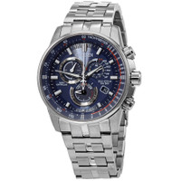 Stainless steel case with a stainless steel acelet. Sainless steel bezel. Blue dial with luminous silver-tone hands and index hour markers. Minute markers around the outer rim. Tachymeter markers around the outer rim. t hands and markers. Date display at the 4 o'clock position. Prpetual calendar. Three sub-dials displaying: 24 hour, day/60 second/power reserve indicator , mode. Citizen cliber E660 eco-drive movement. Scratch resistant sapphire crystal. Screw down crown. Solid case back. Round case shape. Ca size: 43 mm. Fold over clasp with a safety release. Water resistant at 200 meters / 660 feet. Functions: perpetual calendar, atomic timekeeping, radio controlled, chronograph, world time, alarm, date, day, GMT, second time zone, hour, minute, second, power reserve indicator, solar-powered. Sport watch style. Watch label: Japan Movt. Citizen PCAT Radio Controlled Chronograph Blue Dial Watch CB5880-54L. INFORMATION Brand: Citizen Series: Pcat Collection Name: PCAT Gender: Mens Model: CB5880-54L Watch Label: Japan Movt Movement: Eco-Drive Engine: Citizen Caliber E660 CASE Case Size: 43 mm Case Material: Stainless Steel Case Shape: Round Case Back: Solid BAND Band Material: Stainless Steel Band Type: Bracelet Band Color: Silver-tone Clasp: Fold Over with Safety Release DIAL Dial Color: Blue Type: Analog Crystal: Scratch Resistant Sapphire Hands: Luminous Silver-tone Dial Markers: Index Second Markers: Minute Markers around the outer rim. Tachymeter scale. Sub Dials: Three - 24 Hour, Day/60 second/Power Reserve Indicator , Mode Luminiscence: Hands and Markers Bezel: Fixed Tachymeter Scale Bezel Color: Silver-tone Bezel Material: Stainless Steel Crown: Screw Down FEATURES Water Resistance: 200 meters / 660 feet Calendar: Date display at the 4 o'clock position. Perpetual Calendar. Functions: Perpetual Calendar, Atomic Timekeeping, Radio Controlled, Chronograph, World Time, Alarm, Date, Day, GMT, Second Time Zone, Hour, Minute, Second, Power Reserve Indicator, Solar-powered Watch Features: Analog, GMT, Power Reserve Indicator, World Time, Solar, Perpetual, Stainless Steel, Chronograph, Atomic Timekeeping, Alarm, Time Zone ADDITIONAL INFO Watch Style: Sport Warranty: 5 Year Jomashop Warranty UPC Code: 013205142635 Jomashop Sku: CZCB5880-54L Department: Watches Category: Watches