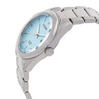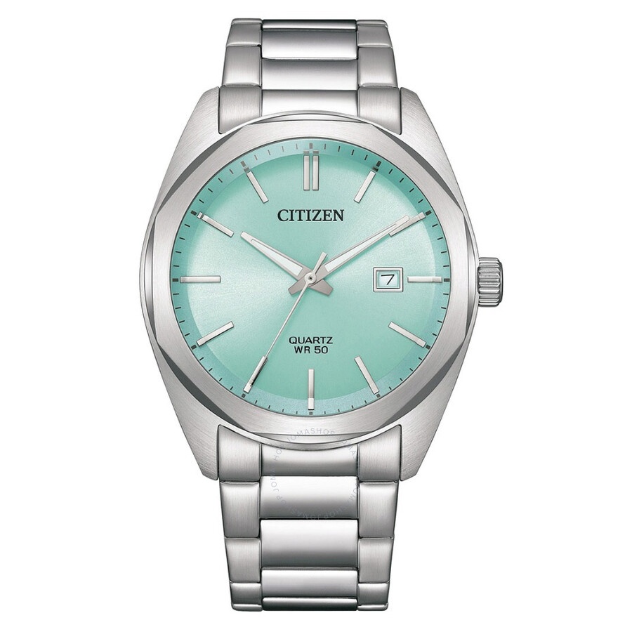Silver-tone stainless steel case and bracelet. Fixed silver-tone stainless steel bezel. Light blue dial with silver-tone hands and index hour markers. Minute markers around the outer rim. Dial Type: Analog. Luminescent hands and markers. Date display at the 3 o'clock position. Quartz movement. Scratch resistant mineral crystal. Solid case back. Round case shape, case size: 41 mm. Fold over clasp with a safety release. Water resistant at 50 meters / 165 feet. Functions: date, hour, minute, second. Casual watch style. Watch label: Japan Movt. Citizen Quartz Men's Light Blue Dial Watch BI5110-54M. INFORMATION Brand: Citizen Gender: Mens Model: BI5110-54M Watch Label: Japan Movt Movement: Quartz CASE Case Size: 41 mm Case Material: Stainless Steel Case Shape: Round Case Back: Solid BAND Band Material: Stainless Steel Band Type: Bracelet Band Color: Silver-tone Clasp: Fold Over with Safety Release DIAL Dial Color: Light Blue Type: Analog Crystal: Scratch Resistant Mineral Hands: Silver-tone Dial Markers: Index Second Markers: Minute Markers around the outer rim Luminiscence: Hands and Markers Bezel: Fixed Bezel Color: Silver-tone Bezel Material: Stainless Steel FEATURES Water Resistance: 50 meters / 165 feet Calendar: Date display at the 3 o'clock position Functions: Date, Hour, Minute, Second Watch Features: Stainless Steel, Analog ADDITIONAL INFO Watch Style: Casual Warranty: 5 Year Jomashop Warranty UPC Code: 4974374336941 Jomashop Sku: CZBI5110-54M Department: Watches