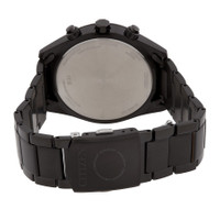 Black IP stainless steel case and bracelet. Fixed black IP stainless steel bezel. Blue dial with rose gold-tone hands and index hour markers. Minute markers around the outer rim. Dial Type: Analog. Date display at the 3 o'clock position. Three sub-dials displaying: 60 second, 24 hour and dual 1/100th of a second/day of the week. Citizen Caliber H800 eco-drive movement. Scratch resistant sapphire crystal. Round case shape, case size: 43 mm, case thickness: 10.2 mm. Fold over clasp with a safety release. Water resistant at 100 meters / 330 feet. Functions: perpetual calendar, chronograph, world time, alarm, date, day, second time zone, hour, minute, second, solar-powered. Radio-controlled Series. Sport watch style. Watch label: Japan Movt. Citizen Radio-Controlled Perpetual Chronograph Blue Dial Men's Watch AT8265-81L. INFORMATION Brand: Citizen Series: Radio-Controlled Collection Name: Radio-Controlled Gender: Mens Model: AT8265-81L Watch Label: Japan Movt Movement: Eco-Drive Engine: Citizen Caliber H800 CASE Case Size: 43 mm Case Thickness: 10.2 mm Case Material: Stainless Steel Case Shape: Round Case Back: Solid BAND Band Material: Stainless Steel Band Type: Bracelet Band Color: Black IP Clasp: Fold Over with Safety Release DIAL Dial Color: Blue Type: Analog Crystal: Scratch Resistant Sapphire Hands: Rose Gold-tone Dial Markers: Index Second Markers: Minute Markers around the outer rim Sub Dials: Three - 60 Second, 24 Hour and Dual 1/100th of a Second/Day of the Week Bezel: Fixed Bezel Color: Black IP Bezel Material: Stainless Steel FEATURES Water Resistance: 100 meters / 330 feet Calendar: Date display at the 3 o'clock position Functions: Perpetual Calendar, Chronograph, World Time, Alarm, Date, Day, Second Time Zone, Hour, Minute, Second, Solar-powered Watch Features: Analog, World Time, Solar, Perpetual, Gold, Stainless Steel, Chronograph, Alarm, Time Zone ADDITIONAL INFO Watch Style: Sport Warranty: 5 Year Jomashop Warranty UPC Code: 4974374340849 Jomashop Sku: CZAT8265-81L Department: Watches