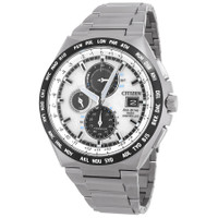 Super titanium case and bracelet. Black bezel. Silver dial with silver-tone hands and index hour markers. Minute markers around the outer rim. Dial Type: Analog. Date display at the 3 o'clock position. Citizen Caliber H800 eco-drive movement. Scratch resistant sapphire crystal. Round case shape, case size: 43.5 mm, case thickness: 10. Fold over clasp with a safety release. Water resistant at 100 meters / 330 feet. Functions: date, day, hour, minute, second, radio controlled, world time, stopwatch, antimagnetic, perpetual calender, local time for: 26 cities. Radio-controlled Series. Sport watch style. Watch label: Japan Movt. Citizen Radio-Controlled Perpetual World Time Silver Dial Men's Watch AT8238-84A. GENERAL Box Type: Original Box CASE Case Thickness: 10 mm Case Material: Super Titanium Case Shape: Round BAND Band Material: Super Titanium Band Type: Bracelet Clasp: Fold Over with Safety Release DIAL Dial Color: Silver Type: Analog Crystal: Scratch Resistant Sapphire Hands: Silver-tone Dial Markers: Index Second Markers: Minute Markers around the outer rim Bezel Color: Black INFORMATION Brand: Citizen Series: Radio-Controlled Collection Name: Radio-Controlled Gender: Mens Model: AT8238-84A Watch Label: Japan Movt Movement: Eco-Drive Engine: Citizen Caliber H800 FEATURES Water Resistance: 100 meters / 330 feet Calendar: Date display at the 3 o'clock position Functions: Date, Day, Hour, Minute, Second, Radio Controlled, World Time, Stopwatch, Antimagnetic, Perpetual Calender, Local time for: 26 cities Watch Features: Analog, World Time, Perpetual, Titanium ADDITIONAL INFO Watch Style: Sport Warranty: 5 Year Jomashop Warranty Jomashop Sku: CZAT8238-84A Department: Watches