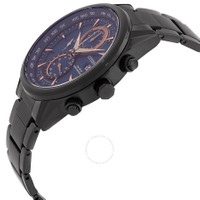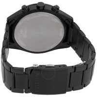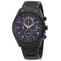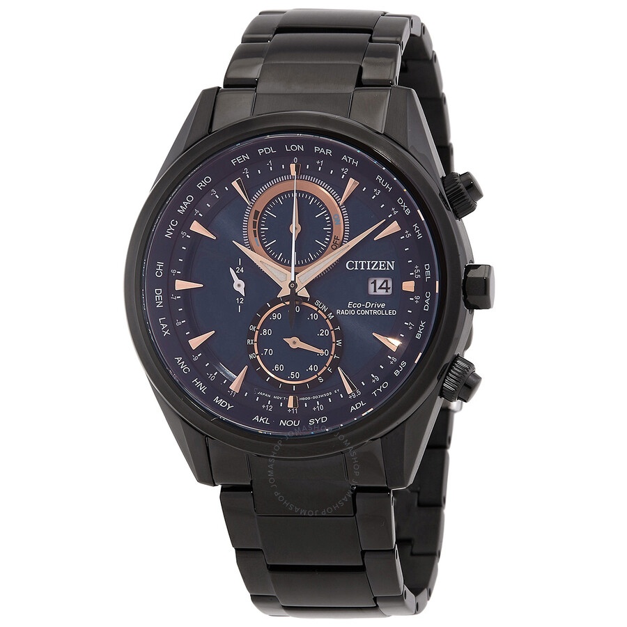 Black stainless steel case and bracelet. Fixed black stainless steel bezel. Blue dial with index hour markers. Minute markers around the outer rim. Dial Type: Analog. Date display at the 3 o'clock position. Three sub-dials displaying: 60 second, 24 hour and dual 1/100th of a second/day of the week. Citizen Caliber H800 eco-drive movement. Scratch resistant sapphire crystal. Solid case back. Round case shape, case size: 43 mm, case thickness: 10.2 mm. Band width: 22 mm. Fold over clasp with a safety release. Water resistant at 100 meters / 330 feet. Functions: perpetual calendar, chronograph, world time, alarm, date, day, second time zone, hour, minute, second, solar-powered. Radio-controlled Series. Sport watch style. Watch label: Japan Movt. Citizen Radio-Controlled World Time Chronograph Blue Dial Men's Watch AT8265-57L. CASE Case Size: 43 Case Thickness: 10.2 mm Case Material: Stainless Steel Case Shape: Round Case Back: Solid BAND Band Material: Stainless Steel Band Type: Bracelet Band Color: Black Band Width: 22 mm Clasp: Fold Over with Safety Release DIAL Dial Color: Blue Type: Analog Crystal: Scratch Resistant Sapphire Hands: Rose Gold-tone Dial Markers: Index Second Markers: Minute Markers around the outer rim Sub Dials: Three - 60 Second, 24 Hour and Dual 1/100th of a Second/Day of the Week Bezel: Fixed Bezel Color: Black Bezel Material: Stainless Steel INFORMATION Brand: Citizen Series: Radio-Controlled Collection Name: Radio-Controlled Gender: Mens Model: AT8265-57L Watch Label: Japan Movt Movement: Eco-Drive Engine: Citizen Caliber H800 FEATURES Water Resistance: 100 meters / 330 feet Calendar: Date display at the 3 o'clock position Functions: Perpetual Calendar, Chronograph, World Time, Alarm, Date, Day, Second Time Zone, Hour, Minute, Second, Solar-powered Watch Features: Analog, World Time, Solar, Perpetual, Stainless Steel, Chronograph, Alarm, Time Zone ADDITIONAL INFO Watch Style: Sport Warranty: 5 Year Jomashop Warranty UPC Code: 013205164057 Jomashop Sku: CZAT8265-57L Department: Watches