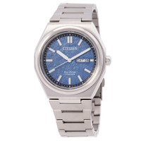 Gold-tone super titanium case with a silver-tone super titanium bracelet. Fixed silver-tone super titanium bezel. Blue dial with silver-tone hands and index hour markers. Minute markers around the outer rim. Dial Type: Analog. Day of the week and date display at the 3 o'clock position. Citizen Caliber Eco-Drive J800 eco-drive movement. Scratch resistant sapphire crystal. Solid case back. Round case shape, case size: 39 mm. Fold over clasp with a safety release. Water resistant at 100 meters / 330 feet. Functions: date, day, hour, minute, second, solar-powered. Zenshin Series. Sport watch style. Watch label: Japan Movt. Citizen Zenshin Blue Dial Men's Watch AW0130-85L. CASE Case Size: 39 Case Material: Super Titanium Case Shape: Round Case Back: Solid BAND Band Material: Super Titanium Band Type: Bracelet Band Color: Silver-tone Clasp: Fold Over with Safety Release DIAL Dial Color: Blue Type: Analog Crystal: Scratch Resistant Sapphire Hands: Silver-tone Dial Markers: Index Second Markers: Minute Markers around the outer rim Bezel: Fixed Bezel Color: Silver-tone Bezel Material: Super Titanium INFORMATION Brand: Citizen Series: Zenshin Collection Name: Zenshin Gender: Mens Model: AW0130-85L Watch Label: Japan Movt Movement: Eco-Drive Engine: Citizen Caliber Eco-Drive J800 FEATURES Water Resistance: 100 meters / 330 feet Calendar: Day of the Week and Date display at the 3 o'clock position Functions: Date, Day, Hour, Minute, Second, Solar-powered Watch Features: Analog, Solar, Gold, Titanium ADDITIONAL INFO Watch Style: Sport Warranty: 5 Year Jomashop Warranty Jomashop Sku: CZAW0130-85L Department: Watches Category: Watches
