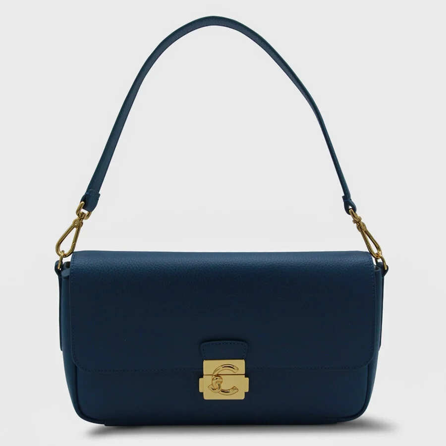 Coccinelle Deep Blue Leather C-Me Lock Shoulder Bag