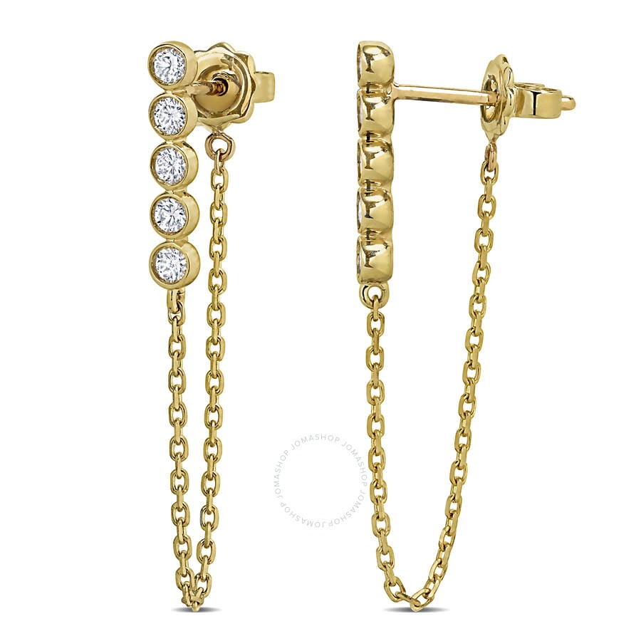 Light, luminous, and effortlessly elegant—these 1/3ct TW lab-grown diamond drop chain earrings in 14k yellow gold are the epitome of modern minimalism. Each earring features a delicate chain with a shimmering lab-created diamond that floats gracefully, catching the light with every movement. Crafted in warm, polished 14k yellow gold and IGI certified, these earrings offer sustainable sparkle with timeless appeal. Created Forever Ladies Earrings. SKU: JMS011651. Color: Yellow. Metal Type: Yellow Gold. Metal Stamp: 14k. Metal Weight: 1.17g. Gem stone type: Diamond. Stone weight: 0.3ct. Number of stones: 10. Stone clarity: VS1-VS2. Stone shape: Round. Stone color: G-H. Earrings style: Drop/Dangle. Created Forever 1/3ct TW Lab-Grown Diamond Drop Chain Earrings in 14k Yellow Gold. GENERAL Box: No Papers: No Stone Shape: Round Color: Yellow INFORMATION Brand: Created Forever Gender: Womens Model: JMS011651 DETAILS Earrings: Drop/Dangle Material : Yellow Gold Metal Stamp: 14K Metal Weight: 1.17 Stone Type: Diamond Stone Weight: 0.3 Stone Color: G-H Stone Cut: Round Stone Clarity: VS1-VS2 Stone Origin: Lab Grown Total Stones: 10 ADDITIONAL INFO Jomashop Sku: Y-A5CMW Department: Jewelry Category: Earrings