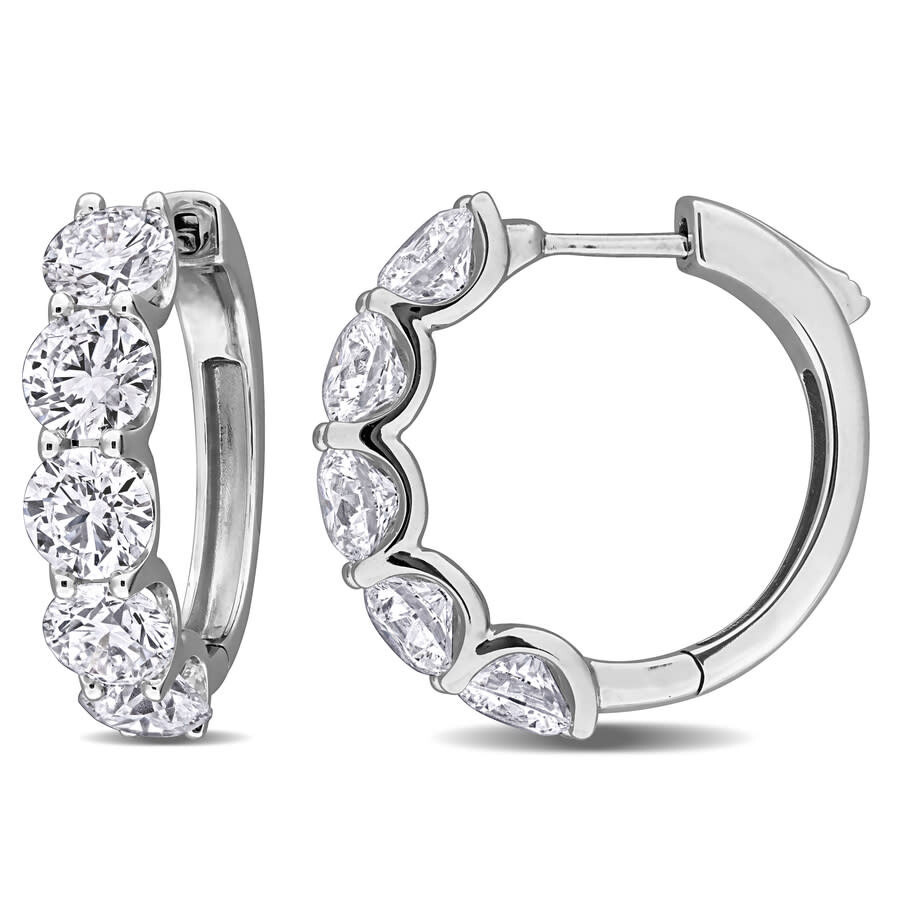 Shine bright with these stunning 5ct TW lab-grown diamond hoop earrings, crafted in radiant 14k white gold. Featuring a continuous row of sparkling lab-created diamonds, these hoops offer timeless elegance and exceptional brilliance. IGI certified and ethically sourced, they provide luxurious sparkle with a sustainable conscience. Created Forever Ladies Earrings. SKU: JMS011668. Color: White. Metal Type: White Gold. Metal Stamp: 14k. Metal Weight: 6.97g. Gem stone type: Diamond. Stone weight: 5ct. Number of stones: 10. Stone clarity: VS1-VS2. Stone shape: Round. Stone color: G-H. Earrings style: Hoop. Created Forever 5ct TW Lab-Grown Diamond Hoop Earrings in 14k White Gold. GENERAL Stone Shape: Round Color: White INFORMATION Brand: Created Forever Gender: Womens Model: JMS011668 DETAILS Earring Style: Hoop Ring Style: Fashion Material : White Gold Metal Stamp: 14K Metal Weight: 6.97 Stone Type: Diamond Stone Weight: 5 Stone Color: G-H Stone Cut: Round Stone Clarity: VS1-VS2 Stone Origin: Lab Grown Total Stones: 10 ADDITIONAL INFO Jomashop Sku: Y-A5CN6 Department: Jewelry Category: Earrings