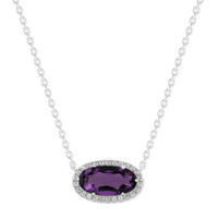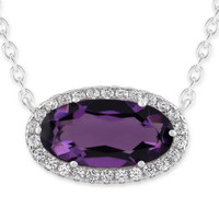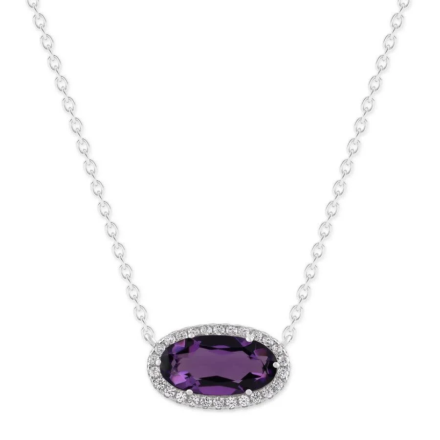 Designed to stand out, this oval-cut 6×12mm Amethyst pendant is framed by a delicate halo that enhances its vibrant, color-changing glow. Crafted in polished sterling silver and secured with a reliable spring ring clasp, it balances elegance with everyday practicality. A stunning choice for women who love refined sparkle, this necklace comes complete with a gift box. DiamondMuse Ladies Necklaces. SKU: UDN0056Z-DWAM. Color: Purple. Metal Type: Sterling Silver. Metal Stamp: 925-Sterling. Metal Weight: 2.6g. Gem stone type: Amethyst. Number of stones: 1. Stone color: Purple. Necklace style: Pendant. Chain type: Cable. Closure type: Spring Ring. DiamondMuse Belacqua Amethyst February Birthstone Halo Pendant Necklace in Sterling Silver, Oval Cut 6*12mm. GENERAL Color: Purple INFORMATION Brand: Diamondmuse Gender: Womens Model: UDN0056Z-DWAM DETAILS Size Info: 18 inches Necklaces: Pendant Ring Style: Fashion Chain Type: Cable Closure Type: Spring Ring Material : Sterling Silver Metal Stamp: 925-Sterling Metal Weight: 2.6 Stone Type: Amethyst Stone Color: Purple Stone Origin: Natural Total Stones: 1 ADDITIONAL INFO Jomashop Sku: Y-A5T98 Department: Jewelry Category: Necklaces