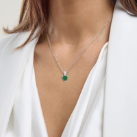This necklace presents a heart-shaped emerald set in polished sterling silver. The May birthstone’s green tone is paired with a simple heart form for a balanced and recognizable design. The piece includes a matching chain and comes packaged in a gift box. DiamondMuse Ladies Necklaces. SKU: UDP0062L-DWEM. Color: Green. Metal Type: Sterling Silver. Metal Stamp: 925-Sterling. Metal Weight: 2.15g. Gem stone type: Emerald. Number of stones: 1. Stone color: Green. Necklace style: Pendant. Chain type: Cable. Closure type: Spring Ring. DiamondMuse Belacqua Emerald May Birthstone Heart Pendant Necklace in Sterling Silver. GENERAL Color: Green INFORMATION Brand: Diamondmuse Gender: Womens Model: UDP0062L-DWEM DETAILS Size Info: 18 inches Necklaces: Pendant Ring Style: Fashion Chain Type: Cable Closure Type: Spring Ring Material : Sterling Silver Metal Stamp: 925-Sterling Metal Weight: 2.15 Stone Type: Emerald Stone Color: Green Stone Origin: Natural Total Stones: 1 ADDITIONAL INFO Jomashop Sku: Y-A5T7M Department: Jewelry Category: Necklaces