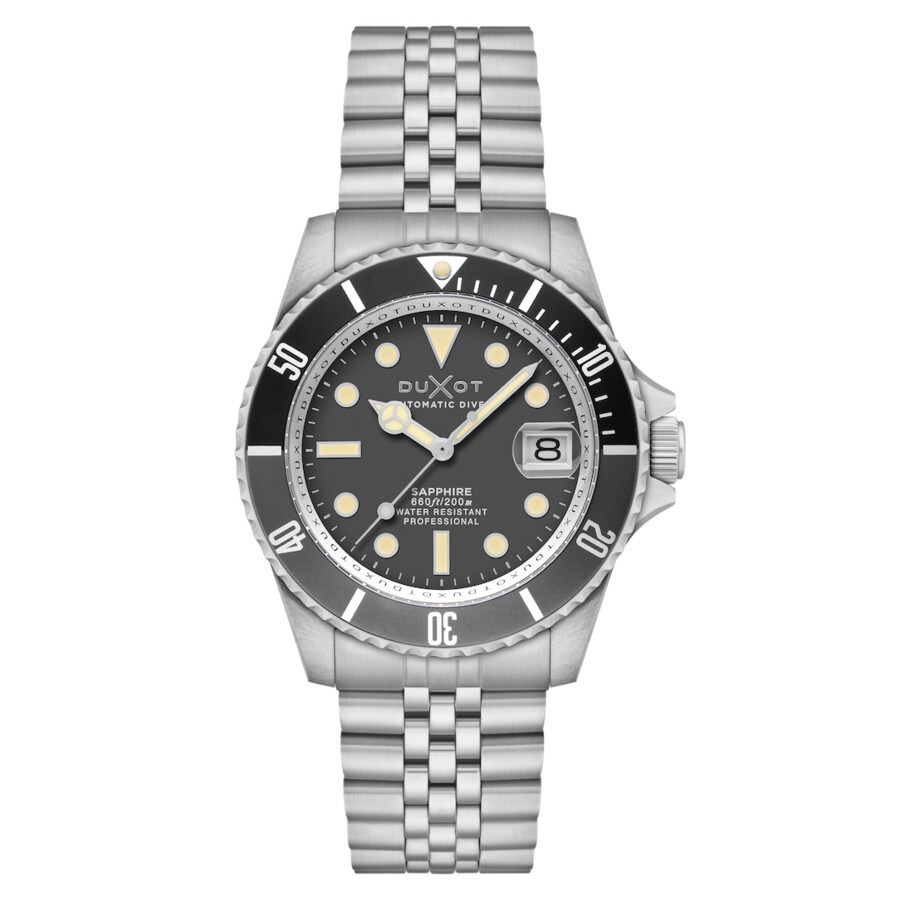 A luxurious timepiece with a classic and elegant design that exudes a timeless sophistication. The Atlantica Diver Automatic boasts a Japan automatic movement, an eye-catching two-tone bezel, and a sapphire lens, this classic diver offers superior reliability and durability. With a water resistance of 20 ATM, the Atlantica Diver Automatic is a perfect companion for all aquatic adventures. GENERAL Box Type: Original Box CASE Case Diameter: 42 mm Case Thickness: 13 mm Case Material: Stainless Steel Case Shape: Round Case Back: Transparent BAND Band Material: Stainless Steel Band Type: Bracelet Band Color: Silver-tone Band Length: 8 inches Band Width: 22 mm DIAL Dial Color: Grey Type: Analog Crystal: Scratch Resistant Sapphire Dial Markers: Index Bezel: Uni-directional Rotating Bezel Material: Stainless Steel Crown: Screw Down INFORMATION Brand: Duxot Series: Atlantica Diver Collection Name: Atlantica Diver Gender: Mens Model: DX-2057-55 Movement: Automatic Engine: M-SII-NH35-D3 FEATURES Water Resistance: 200 meters / 660 feet Watch Features: Analog ADDITIONAL INFO Watch Style: Casual Warranty: With Manufacturers Guarantee UPC Code: 194595055009 Jomashop Sku: Y-A5L4V Department: Watches