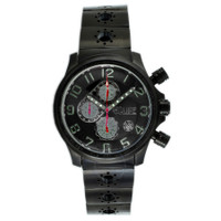 Black ion-plated stainless steel case and bracelet. Fixed black ion-plated bezel with tachymeter. Black dial with luminous hands and Arabic numeral hour markers. Minute markers around the outer rim. Dial Type: Analog. Luminescent hands. Date display at the 4 o'clock position. Chronograph - three sub-dials displaying: 60 second, 12 hour and 1/20th of a second. Quartz movement. Scratch resistant mineral crystal. Screw down crown. Screw in case back. Case diameter: 47 mm. Case thickness: 10 mm. Round case shape. Band width: 24 mm. Fold over deployment clasp. Water resistant at 100 meters (330 feet). Functions: chronograph, hour, minute, second. Casual watch style. Equipe Hemi Men's Watch Q509. GENERAL Color: Black INFORMATION Brand: Equipe Series: Hemi Collection Name: Hemi Gender: Mens Model: Q509 Movement: Quartz CASE Case Size: 47 mm Case Thickness: 10 mm Case Material: Stainless Steel Case Shape: Round Case Back: Screw In BAND Band Material: Stainless Steel Band Type: Bracelet Band Color: Black Ion-plated Band Width: 24 mm Clasp: Fold Over Deployment DIAL Dial Color: Black Type: Analog Crystal: Scratch Resistant Mineral Hands: Luminous Dial Markers: Arabic Numeral Second Markers: Minute Markers around the outer rim Sub Dials: Three - 60 Second, 12 hour and 1/20th of a Second Luminiscence: Hands Bezel: Fixed Tachymeter Scale Bezel Color: Black Ion-plated Crown: Screw Down FEATURES Water Resistance: 100 meters / 330 feet Calendar: Date display at the 4 o'clock position Functions: Chronograph, Hour, Minute, Second Watch Features: Chronograph, Stainless Steel, Analog ADDITIONAL INFO Watch Style: Casual Warranty: With Manufacturer's Guarantee UPC Code: 847864057074 Additional Info: Tachymeter Jomashop Sku: EQUQ509 Department: Watches Category: Watches