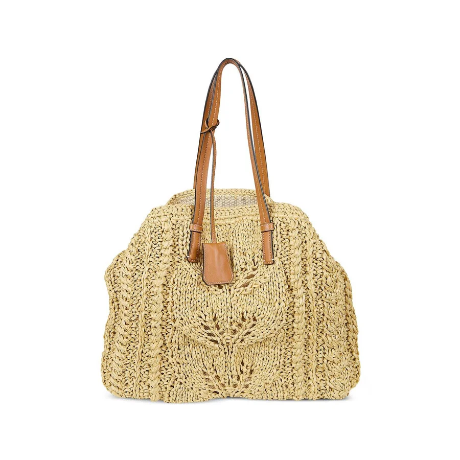 Ermanno Scervino Ladies Tote. SKU: D483S311FMRDM30815. Color: Beige. Size: D: 19.0 cm H: 30.0 cm W: 38.0 cm. Ermanno Scervino Rafia Tote Bag. Banana Yellow Woven Design Top Handles. Composition: Calf Leather, 100% Raffia, 100% GENERAL Size Info: D: 19.0 cm H: 30.0 cm W: 38.0 cm Color: Beige INFORMATION Brand: Ermanno Scervino Gender: Womens Model: D483S311FMRDM30815 ADDITIONAL INFO Jomashop Sku: Z-CDA2T Department: Bags Category: Tote Bags