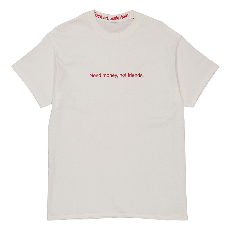 F.A.M.T. White T-Shirt "Need Money, Not Friends" in Red Print