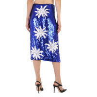 Filles A Papa Ladies sequinned skirt hand embroidered SKU: LAGOON-BLUE. Color: Blue. Filles A Papa Ladies Lagoon-blue Pencil Skirt. Royal Blue Sequin Wrap Skirt With White Sequin Palm Tree Pattern In Allover, Fully Embroidered By Hand. Invisible Zipper At The Side, Fully Lined. GENERAL Color: Blue INFORMATION Brand: Filles A Papa Gender: Womens Model: LAGOON-BLUE DETAILS Category: Bottoms Apparel Type: Skirts ADDITIONAL INFO Jomashop Sku: -FAPLAGOONBLUE Department: Apparel