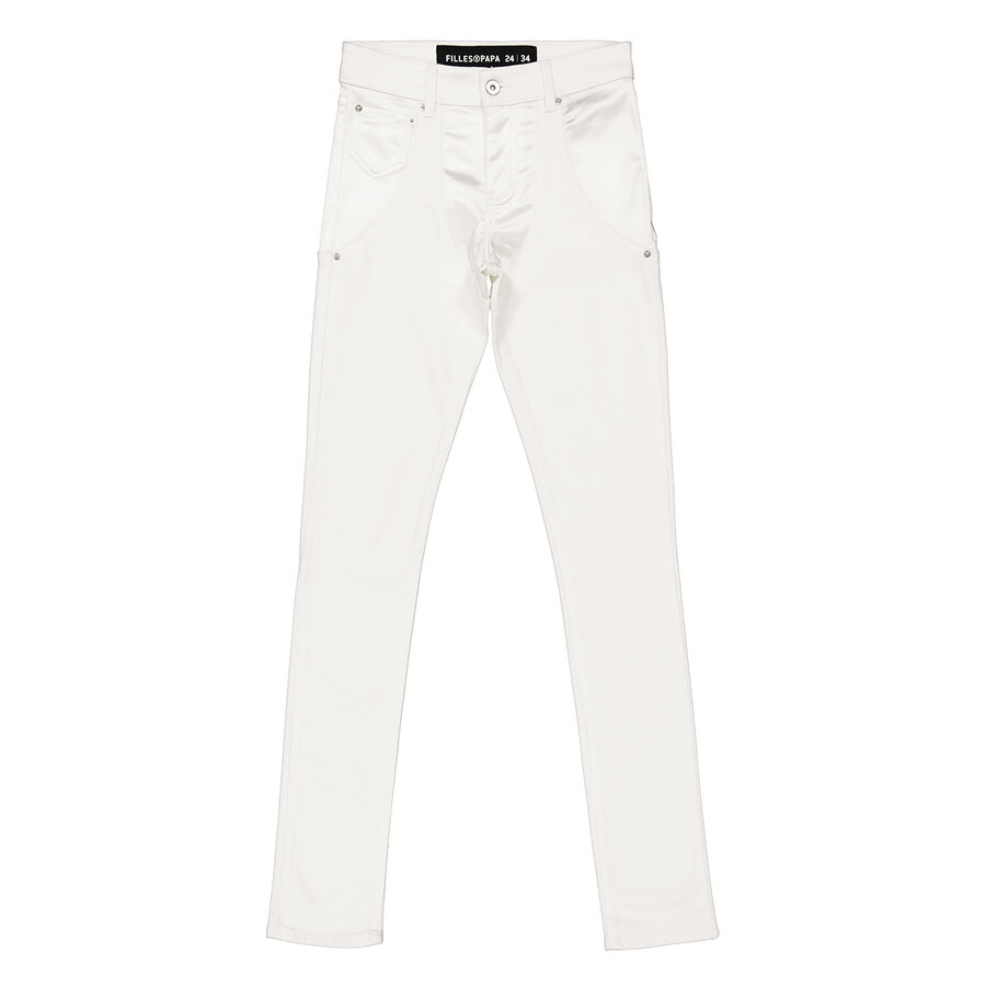 Filles A Papa Ladies Bottoms. Fashion category: Jeans & Denim. SKU: 62046231-53-WHITE. Color: White. Filles A Papa Ladies Pants White Satine Jeans. GENERAL Color: White INFORMATION Brand: Filles A Papa Gender: Womens Model: 62046231-53-WHITE DETAILS Category: Bottoms Apparel Type: Jeans & Denim Color: White Material: Denim, Satine ADDITIONAL INFO Jomashop Sku: -62046231-53-WHITE Department: Apparel