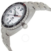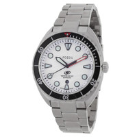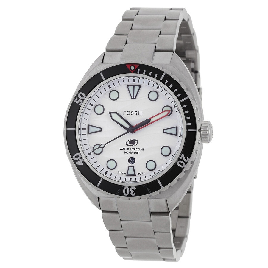 Silver-tone stainless steel case and bracelet. Black stainless steel bezel. White dial with black hands and index hour markers. Minute markers around the outer rim. Dial Type: Analog. Luminescent hands and markers. Date display at the 6 o'clock position. Quartz movement. Scratch resistant mineral crystal. Round case shape, case size: 42 mm, case thickness: 13 mm. Band width: 22 mm, band length: 7.5 inches. Fold over clasp with a safety release. Water resistant at 200 meters / 660 feet. Functions: date, hour, minute, second. Breaker Series. Sport watch style. Watch label: Japan Movt. Fossil Breaker Quartz White Dial Men's Watch FS6063. GENERAL Box Type: Original Box CASE Case Diameter: 42 mm Case Thickness: 13 mm Case Material: Stainless Steel Case Shape: Round BAND Band Material: Stainless Steel Band Type: Bracelet Band Color: Silver-tone Band Length: 7.5 inches Band Width: 22 mm Clasp: Fold Over with Safety Release DIAL Dial Color: White Type: Analog Crystal: Scratch Resistant Mineral Hands: Black Dial Markers: Index Second Markers: Minute Markers around the outer rim Luminiscence: Hands and Markers Bezel Color: Black Bezel Material: Stainless Steel INFORMATION Brand: Fossil Series: Breaker Collection Name: Breaker Gender: Mens Model: FS6063 Watch Label: Japan Movt Movement: Quartz FEATURES Water Resistance: 200 meters / 660 feet Calendar: Date display at the 6 o'clock position Functions: Date, Hour, Minute, Second Watch Features: Stainless Steel, Analog ADDITIONAL INFO Watch Style: Fashion Warranty: 2 Year Jomashop Warranty UPC Code: 796483653948 Jomashop Sku: FSFS6063 Department: Watches
