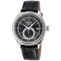 Silver-tone stainless steel case with a black leather strap. Fixed silver-tone stainless steel bezel. Black dial with silver-tone hands and index hour markers. Minute markers around the outer rim. Dial Type: Analog. Date display at the 3 o'clock position. One subdial displaying: small second. ETA Caliber 2895-2 Automatic movement, based upon ETA 2892-A2, containing 27 Jewels, bitting at 28800 vph, and has a power reserve of approximately 42 hours. Scratch resistant sapphire crystal. Screw down crown. Transparent case back. Round case shape, case size: 40 mm, case thickness: 10 mm. Band width: 20 mm. Buckle clasp. Water resistant at 100 meters / 330 feet. Functions: date, hour, minute, small second. Additional Info: seconds subdial. Empire Series. Luxury watch style. Watch label: Swiss Made. Gevril Empire Automatic Black Dial Men's Watch 48100. GENERAL Box Type: Original Box CASE Case Size: 40 Case Thickness: 10 mm Case Material: Stainless Steel Case Shape: Round Case Back: Transparent BAND Band Material: Leather Band Type: Strap Band Color: Black Band Width: 20 mm Clasp: Buckle DIAL Dial Color: Black Type: Analog Crystal: Scratch Resistant Sapphire Hands: Silver-tone Dial Markers: Index Second Markers: Minute Markers around the outer rim Sub Dials: One - Small Second Bezel: Fixed Bezel Color: Silver-tone Bezel Material: Stainless Steel Crown: Screw Down INFORMATION Brand: Gevril Series: Empire Collection Name: Empire Gender: Mens Model: 48100 Watch Label: Swiss Made Movement: Automatic Engine: ETA Caliber 2895-2 Power Reserve: 42 hours FEATURES Water Resistance: 100 meters / 330 feet Calendar: Date display at the 3 o'clock position Functions: Date, Hour, Minute, Small Second Watch Features: Analog, Leather, Stainless Steel ADDITIONAL INFO Watch Style: Luxury Warranty: https://www.gevril.com/pages/watch-repair-shop-and UPC Code: 840840142580 Additional Info: seconds subdial Jomashop Sku: Y-A3CQV Department: Watches Category: Watches