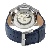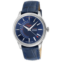 Silver-tone stainless steel case with a blue leather strap. Fixed silver-tone stainless steel bezel. Blue dial with silver-tone hands and index hour markers. Minute markers around the outer rim. Dial Type: Analog. Luminescent hands. Date display between 8 and 11 o'clock position. Sellita Caliber SW200-1 Automatic movement, containing 26 Jewels, bitting at 28800 vph, and has a power reserve of approximately 38 hours. Scratch resistant sapphire crystal. Screw down crown. Transparent case back. Round case shape, case size: 44 mm, case thickness: 11 mm. Band width: 18 mm. Buckle clasp. Water resistant at 50 meters / 165 feet. Functions: date, hour, minute, second. Guggenheim Series. Luxury watch style. Watch label: Swiss Made. Gevril Guggenheim Automatic Blue Dial Men's Watch 49201. GENERAL Box Type: Original Box CASE Case Size: 44 Case Thickness: 11 mm Case Material: Stainless Steel Case Shape: Round Case Back: Transparent BAND Band Material: Leather Band Type: Strap Band Color: Blue Band Width: 18 mm Clasp: Buckle DIAL Dial Color: Blue Type: Analog Crystal: Scratch Resistant Sapphire Hands: Silver-tone Dial Markers: Index Second Markers: Minute Markers around the outer rim Luminiscence: Hands Bezel: Fixed Bezel Color: Silver-tone Bezel Material: Stainless Steel Crown: Screw Down INFORMATION Brand: Gevril Series: Guggenheim Collection Name: Guggenheim Gender: Mens Model: 49201 Watch Label: Swiss Made Movement: Automatic Engine: Sellita Caliber SW200-1 Power Reserve: 38 hours FEATURES Water Resistance: 50 meters / 165 feet Calendar: Date display between 8 and 11 o'clock position Functions: Date, Hour, Minute, Second Watch Features: Analog, Leather, Stainless Steel ADDITIONAL INFO Watch Style: Luxury Warranty: https://www.gevril.com/pages/watch-repair-shop-and UPC Code: 840840146380 Jomashop Sku: Y-A4GYM Department: Watches