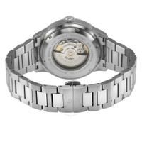 Silver-tone stainless steel case and bracelet. Fixed silver-tone stainless steel bezel. Blue dial with silver-tone hands and index hour markers. Minute markers around the outer rim. Dial Type: Analog. Luminescent hands. Date display between 8 and 11 o'clock position. Sellita Caliber SW200-1 Automatic movement, containing 26 Jewels, bitting at 28800 vph, and has a power reserve of approximately 38 hours. Scratch resistant sapphire crystal. Screw down crown. Transparent case back. Round case shape, case size: 44 mm, case thickness: 11 mm. Band width: 18 mm. Deployment with push button release clasp. Water resistant at 50 meters / 165 feet. Functions: date, hour, minute, second. Guggenheim Series. Luxury watch style. Watch label: Swiss Made. Gevril Guggenheim Automatic Blue Dial Men's Watch 49201B. GENERAL Box Type: Original Box CASE Case Size: 44 Case Thickness: 11 mm Case Material: Stainless Steel Case Shape: Round Case Back: Transparent BAND Band Material: Stainless Steel Band Type: Bracelet Band Color: Silver-tone Band Width: 18 mm Clasp: Deployment with Push Button Release DIAL Dial Color: Blue Type: Analog Crystal: Scratch Resistant Sapphire Hands: Silver-tone Dial Markers: Index Second Markers: Minute Markers around the outer rim Luminiscence: Hands Bezel: Fixed Bezel Color: Silver-tone Bezel Material: Stainless Steel Crown: Screw Down INFORMATION Brand: Gevril Series: Guggenheim Collection Name: Guggenheim Gender: Mens Model: 49201B Watch Label: Swiss Made Movement: Automatic Engine: Sellita Caliber SW200-1 Power Reserve: 38 hours FEATURES Water Resistance: 50 meters / 165 feet Calendar: Date display between 8 and 11 o'clock position Functions: Date, Hour, Minute, Second Watch Features: Stainless Steel, Analog ADDITIONAL INFO Watch Style: Luxury Warranty: https://www.gevril.com/pages/watch-repair-shop-and UPC Code: 840840146427 Jomashop Sku: Y-A4GYC Department: Watches