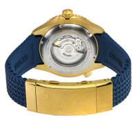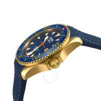 Yellow gold-tone stainless steel case with a black rubber strap. Uni-directional rotating black ceramic bezel. Black dial with yellow gold-tone hands and index hour markers. Minute markers around the outer rim. Dial Type: Analog. Luminescent hands and markers. Date display at the 3 o'clock position. Sellita Caliber SW200 Automatic movement, containing 26 Jewels, bitting at 28800 vph, and has a power reserve of approximately 38 hours. Scratch resistant sapphire crystal. Screw down crown. Transparent case back. Round case shape, case size: 43 mm, case thickness: 14 mm. Band width: 18 mm. Deployment with push button release clasp. Water resistant at 300 meters / 1000 feet. Functions: date, hour, minute, second. Additional Info: divers, screw down helium release valve. Hudson Yards Series. Luxury watch style. Watch label: Swiss Made. Gevril Hudson Yards Automatic Black Dial Men's Watch 48805R. INFORMATION Brand: Gevril Series: Hudson Yards Collection Name: Hudson Yards Gender: Mens Model: 48805R Watch Label: Swiss Made Movement: Automatic Engine: Sellita Caliber SW200 Power Reserve: 38 hours CASE Case Size: 43 mm Case Thickness: 14 mm Case Material: Stainless Steel Case Shape: Round Case Back: Transparent BAND Band Material: Rubber Band Type: Strap Band Color: Black Band Width: 18 mm Clasp: Deployment with Push Button Release DIAL Dial Color: Black Type: Analog Crystal: Scratch Resistant Sapphire Hands: Yellow Gold-tone Dial Markers: Index Second Markers: Minute Markers around the outer rim Luminiscence: Hands and Markers Bezel: Uni-directional Rotating Bezel Color: Black Bezel Material: Ceramic Crown: Screw Down FEATURES Water Resistance: 300 meters / 1000 feet Calendar: Date display at the 3 o'clock position Functions: Date, Hour, Minute, Second Watch Features: Stainless Steel, Rubber, Gold, Ceramic, Analog ADDITIONAL INFO Watch Style: Luxury Warranty: With Manufacturers Guarantee UPC Code: 840840141033 Additional Info: Divers, Screw down helium release valve Jomashop Sku: Y-A2U87 Department: Watches Category: Watches