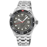 Silver-tone stainless steel case and bracelet. Uni-directional rotating black stainless steel bezel. Grey dial with silver-tone hands and index hour markers. Minute markers around the outer rim. Dial Type: Analog. Luminescent hands and markers. Date display at the 3 o'clock position. Sellita Caliber SW200-1 Automatic movement, containing 26 Jewels, bitting at 28800 vph, and has a power reserve of approximately 38 hours. Scratch resistant sapphire crystal. Screw down crown. Transparent case back. Round case shape, case size: 43 mm, case thickness: 13 mm. Band width: 19 mm. Deployment with push button release clasp. Water resistant at 300 meters / 1000 feet. Functions: date, hour, minute, second. Additional Info: gray meteorite dial, black enamel bezel, dive extension deployment buckle. Hudson Yards Series. Luxury watch style. Watch label: Swiss Made. Gevril Hudson Yards Automatic Grey Dial Men's Watch 48851B. INFORMATION Brand: Gevril Series: Hudson Yards Collection Name: Hudson Yards Gender: Mens Model: 48851B Watch Label: Swiss Made Movement: Automatic Engine: Sellita Caliber SW200-1 Power Reserve: 38 hours CASE Case Size: 43 mm Case Thickness: 13 mm Case Material: Stainless Steel Case Shape: Round Case Back: Transparent BAND Band Material: Stainless Steel Band Type: Bracelet Band Color: Silver-tone Band Width: 19 mm Clasp: Deployment with Push Button Release DIAL Dial Color: Grey Type: Analog Crystal: Scratch Resistant Sapphire Hands: Silver-tone Dial Markers: Index Second Markers: Minute Markers around the outer rim Luminiscence: Hands and Markers Bezel: Uni-directional Rotating Bezel Color: Black Bezel Material: Stainless Steel Crown: Screw Down FEATURES Water Resistance: 300 meters / 1000 feet Calendar: Date display at the 3 o'clock position Functions: Date, Hour, Minute, Second Watch Features: Stainless Steel, Analog ADDITIONAL INFO Watch Style: Luxury UPC Code: 840840146205 Additional Info: Gray meteorite dial, Black enamel bezel, Dive extension Deployment Buckle Jomashop Sku: Y-A4EJ5 Department: Watches Category: Watches