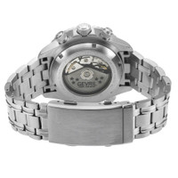 Silver-tone stainless steel case and bracelet. Uni-directional rotating black stainless steel bezel. Black dial with silver-tone hands and index hour markers. Minute markers around the outer rim. Dial Type: Analog. Luminescent hands and markers. Date display at the 3 o'clock position. Chronograph - three sub-dials displaying: 60 second, 30 minute and 12 hour. Sellita Caliber SW500 Automatic movement, containing 25 Jewels, bitting at 28800 vph, and has a power reserve of approximately 44 hours. Scratch resistant sapphire crystal. Screw down crown. Transparent case back. Round case shape, case size: 43 mm, case thickness: 17 mm. Band width: 20 mm. Deployment with push button release clasp. Water resistant at 300 meters / 1000 feet. Functions: chronograph, date, day, hour, minute, small second. Additional Info: helium release valve, chronograph. Hudson Yards Chronograph Series. Luxury watch style. Watch label: Swiss Made. Gevril Hudson Yards Chronograph Automatic Black Dial Men's Watch 48814B. GENERAL Box Type: Original Box CASE Case Size: 43 Case Thickness: 17 mm Case Material: Stainless Steel Case Shape: Round Case Back: Transparent BAND Band Material: Stainless Steel Band Type: Bracelet Band Color: Silver-tone Band Width: 20 mm Clasp: Deployment with Push Button Release DIAL Dial Color: Black Type: Analog Crystal: Scratch Resistant Sapphire Hands: Silver-tone Dial Markers: Index Second Markers: Minute Markers around the outer rim Sub Dials: Three - 60 Second, 30 Minute and 12 Hour Luminiscence: Hands and Markers Bezel: Uni-directional Rotating Bezel Color: Black Bezel Material: Stainless Steel Crown: Screw Down INFORMATION Brand: Gevril Series: Hudson Yards Chronograph Collection Name: Hudson Yards Chronograph Gender: Mens Model: 48814B Watch Label: Swiss Made Movement: Automatic Engine: Sellita Caliber SW500 Power Reserve: 44 hours FEATURES Water Resistance: 300 meters / 1000 feet Calendar: Date display at the 3 o'clock position Functions: Chronograph, Date, Day, Hour, Minute, Small Second Watch Features: Analog, Stainless Steel, Chronograph ADDITIONAL INFO Watch Style: Luxury Warranty: https://www.gevril.com/pages/watch-repair-shop-and UPC Code: 840840140678 Additional Info: Helium Release valve, chronograph Jomashop Sku: Y-A2XFC Department: Watches Category: Watches