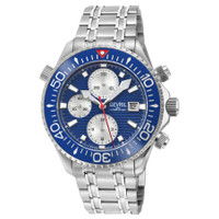 Silver-tone stainless steel case and bracelet. Uni-directional rotating blue stainless steel bezel. Blue dial with silver-tone hands and index hour markers. Minute markers around the outer rim. Dial Type: Analog. Luminescent hands and markers. Date display at the 3 o'clock position. Chronograph - three sub-dials displaying: 60 second, 30 minute and 12 hour. Sellita Caliber SW500 Automatic movement, containing 25 Jewels, bitting at 28800 vph, and has a power reserve of approximately 44 hours. Scratch resistant sapphire crystal. Screw down crown. Transparent case back. Round case shape, case size: 43 mm, case thickness: 17 mm. Band width: 20 mm. Deployment with push button release clasp. Water resistant at 300 meters / 1000 feet. Functions: chronograph, date, day, hour, minute, small second. Additional Info: helium release valve, chronograph. Hudson Yards Chronograph Series. Luxury watch style. Watch label: Swiss Made. Gevril Hudson Yards Chronograph Automatic Blue Dial Men's Watch 48815B. INFORMATION Brand: Gevril Series: Hudson Yards Chronograph Collection Name: Hudson Yards Chronograph Gender: Mens Model: 48815B Watch Label: Swiss Made Movement: Automatic Engine: Sellita Caliber SW500 Power Reserve: 44 hours CASE Case Size: 43 mm Case Thickness: 17 mm Case Material: Stainless Steel Case Shape: Round Case Back: Transparent BAND Band Material: Stainless Steel Band Type: Bracelet Band Color: Silver-tone Band Width: 20 mm Clasp: Deployment with Push Button Release DIAL Dial Color: Blue Type: Analog Crystal: Scratch Resistant Sapphire Hands: Silver-tone Dial Markers: Index Second Markers: Minute Markers around the outer rim Sub Dials: Three - 60 Second, 30 Minute and 12 Hour Luminiscence: Hands and Markers Bezel: Uni-directional Rotating Bezel Color: Blue Bezel Material: Stainless Steel Crown: Screw Down FEATURES Water Resistance: 300 meters / 1000 feet Calendar: Date display at the 3 o'clock position Functions: Chronograph, Date, Day, Hour, Minute, Small Second Watch Features: Chronograph, Stainless Steel, Analog ADDITIONAL INFO Watch Style: Luxury Warranty: With Manufacturers Guarantee UPC Code: 840840140685 Additional Info: Helium Release valve, chronograph Jomashop Sku: Y-A2XFB Department: Watches Category: Watches