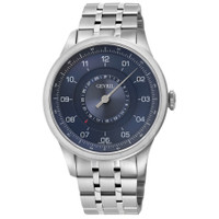 Silver-tone stainless steel case and bracelet. Fixed silver-tone stainless steel bezel. Blue dial with silver-tone hands and Arabic numeral hour markers. Minute scale. Dial Type: Analog. Date display around the inner rim. Sellita Caliber SW200 Automatic movement, containing 26 Jewels, bitting at 28800 vph, and has a power reserve of approximately 38 hours. Scratch resistant sapphire crystal. Pull / push crown. Round case shape, case size: 45 mm, case thickness: 12 mm. Band width: 20 mm. Deployment with push button release clasp. Water resistant at 50 meters / 165 feet. Functions: date, hour, minute, second. Additional Info: sunray and sandblast dial, date wheel on dial, 1 hand time indicator. Jones St Series. Luxury watch style. Watch label: Swiss Made. Gevril Jones St Automatic Blue Dial Men's Watch 2102. INFORMATION Brand: Gevril Series: Jones St Collection Name: Jones St Gender: Mens Model: 2102 Watch Label: Swiss Made Movement: Automatic Engine: Sellita Caliber SW200 Power Reserve: 38 hours CASE Case Size: 45 mm Case Thickness: 12 mm Case Material: Stainless Steel Case Shape: Round BAND Band Material: Stainless Steel Band Type: Bracelet Band Color: Silver-tone Band Width: 20 mm Clasp: Deployment with Push Button Release DIAL Dial Color: Blue Type: Analog Crystal: Scratch Resistant Sapphire Hands: Silver-tone Dial Markers: Arabic Numeral Second Markers: Minute Scale Bezel: Fixed Bezel Color: Silver-tone Bezel Material: Stainless Steel Crown: Pull / Push FEATURES Water Resistance: 50 meters / 165 feet Calendar: Date display around the inner rim Functions: Date, Hour, Minute, Second Watch Features: Stainless Steel, Analog ADDITIONAL INFO Watch Style: Luxury Warranty: With Manufacturers Guarantee UPC Code: 840840140135 Additional Info: Sunray and Sandblast Dial, Date wheel on dial, 1 hand time indicator Jomashop Sku: Y-A2LBP Department: Watches Category: Watches
