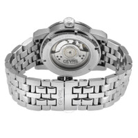 Silver-tone stainless steel case and bracelet. Fixed silver-tone stainless steel bezel. Silver-tone dial with blue hands and Roman numeral hour markers. Minute markers around the outer rim. Dial Type: Analog. Date display at the 3 o'clock position. One subdial displaying: small second. ETA Caliber 2895-2 Automatic movement, based upon ETA 2892-A2, containing 27 Jewels, bitting at 28800 vph, and has a power reserve of approximately 42 hours. Scratch resistant sapphire crystal. Screw down crown. Transparent case back. Round case shape, case size: 39 mm, case thickness: 13 mm. Band width: 20 mm. Deployment with push button release clasp. Water resistant at 50 meters / 165 feet. Functions: date, hour, minute, small second. Additional Info: seconds subdial. Madison Series. Luxury watch style. Watch label: Swiss Made. Gevril Madison Automatic Silver Dial Men's Watch 2501. INFORMATION Brand: Gevril Series: Madison Collection Name: Madison Gender: Mens Model: 2501 Watch Label: Swiss Made Movement: Automatic Engine: ETA Caliber 2895-2 Power Reserve: 42 hours CASE Case Size: 39 mm Case Thickness: 13 mm Case Material: Stainless Steel Case Shape: Round Case Back: Transparent BAND Band Material: Stainless Steel Band Type: Bracelet Band Color: Silver-tone Band Width: 20 mm Clasp: Deployment with Push Button Release DIAL Dial Color: Silver-tone Type: Analog Crystal: Scratch Resistant Sapphire Hands: Blue Dial Markers: Roman Numeral Second Markers: Minute Markers around the outer rim Sub Dials: One - Small Second Bezel: Fixed Bezel Color: Silver-tone Bezel Material: Stainless Steel Crown: Screw Down FEATURES Water Resistance: 50 meters / 165 feet Calendar: Date display at the 3 o'clock position Functions: Date, Hour, Minute, Small Second Watch Features: Stainless Steel, Analog ADDITIONAL INFO Watch Style: Luxury Warranty: With Manufacturers Guarantee UPC Code: 846341086057 Additional Info: seconds subdial Jomashop Sku: Y-A2Q8F Department: Watches Category: Watches