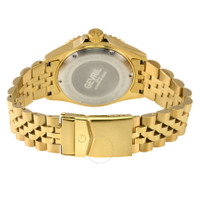 Yellow gold-tone stainless steel case and bracelet. Uni-directional rotating blue ceramic bezel. Blue dial with yellow gold-tone hands and index hour markers. Minute markers around the outer rim. Dial Type: Analog. Luminescent hands and markers. Date display at the 3 o'clock position. Automatic movement. Scratch resistant sapphire crystal. Screw down crown. Solid case back. Round case shape, case size: 43 mm, case thickness: 13 mm. Band width: 20 mm. Deployment with push button release clasp. Water resistant at 200 meters / 660 feet. Functions: date, hour, minute, second. Additional Info: sellita sw200 Swiss automatic movement. Wall Street Series. Luxury watch style. Watch label: Swiss Made. Gevril Wall street Automatic Blue Dial Men's Watch 41854B. GENERAL Box Type: Original Box CASE Case Size: 43 Case Thickness: 13 mm Case Material: Stainless Steel Case Shape: Round Case Back: Solid BAND Band Material: Stainless Steel Band Type: Bracelet Band Color: Yellow Gold-tone Band Width: 20 mm Clasp: Deployment with Push Button Release DIAL Dial Color: Blue Type: Analog Crystal: Scratch Resistant Sapphire Hands: Yellow Gold-tone Dial Markers: Index Second Markers: Minute Markers around the outer rim Luminiscence: Hands and Markers Bezel: Uni-directional Rotating Bezel Color: Blue Bezel Material: Ceramic Crown: Screw Down INFORMATION Brand: Gevril Series: Wall Street Collection Name: Wall street Gender: Mens Model: 41854B Watch Label: Swiss Made Movement: Automatic FEATURES Water Resistance: 200 meters / 660 feet Calendar: Date display at the 3 o'clock position Functions: Date, Hour, Minute, Second Watch Features: Analog, Ceramic, Gold, Stainless Steel ADDITIONAL INFO Watch Style: Luxury Warranty: https://www.gevril.com/pages/watch-repair-shop-and UPC Code: 840840144782 Additional Info: Sellita SW200 Swiss automatic movement Jomashop Sku: Y-A4B4Q Department: Watches Category: Watches