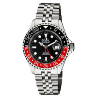 Stainless steel case with a stainless steel bracelet. Uni-directional rotating stainless steel bezel with a black and red (Coke) ceramic ring showing 24 hour markers. Black dial with luminous silver-tone Mercedes-logo and Breguet-style shape hands and dot hour markers. Minute markers around the outer rim. Dial Type: Analog. Luminescent hands and markers. Magnified date display at the 3 o'clock position. Sellita caliber SW330 automatic movement, containing 25 Jewels, bitting at 28800 vph, and has a power reserve of approximately 42 hours. Scratch resistant sapphire crystal. Screw down crown. Solid case back. Round case shape. Case size: 43 mm. Case thickness: 13 mm. Band width: 18 mm. Deployment clasp with a push button release. Water resistant at 200 meters / 660 feet. Functions: date, hour, minute, second, 24 hour. Wall Street Series. Luxury watch style. Watch label: Swiss Made. Gevril Wall Street GMT Black Dial Coke Bezel Men's Watch 4954B. INFORMATION Brand: Gevril Series: Wall Street Collection Name: Wall Street Gender: Mens Model: 4954B Watch Label: Swiss Made Movement: Automatic Engine: Sellita Caliber SW330 Power Reserve: 42 hours CASE Case Size: 43 mm Case Thickness: 13 mm Case Material: Stainless Steel Case Shape: Round Case Back: Solid BAND Band Material: Stainless Steel Band Type: Bracelet Band Color: Silver-tone Band Width: 18 mm Clasp: Deployment with Push Button Release DIAL Dial Color: Black Type: Analog Crystal: Scratch Resistant Sapphire Hands: Luminous Silver-tone Mercedes-logo and Breguet-style shape Dial Markers: Dot Second Markers: Minute Markers around the outer rim Luminiscence: Hands and Markers Bezel: Uni-directional Rotating Bezel Color: Silver-tone Bezel Material: Stainless Steel with a Black and Red (Coke) Ceramic Ring showing 24 Hour Markers Crown: Screw Down FEATURES Water Resistance: 200 meters / 660 feet Calendar: Magnified Date display at the 3 o'clock position Functions: Date, Hour, Minute, Second, 24 Hour Watch Features: Stainless Steel, Ceramic, GMT, Analog ADDITIONAL INFO Watch Style: Luxury UPC Code: 840840124159 Jomashop Sku: Y-131263 Department: Watches Category: Watches