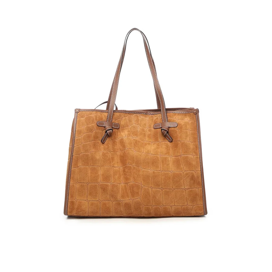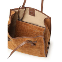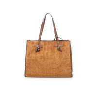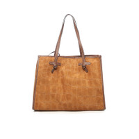 Made of suede with a large crocodile print - Top leather handles - Magnetic closure - Dimensions: 38 x 31 x 16 cm Made in Italy - Designer color: Cognac GENERAL Color: Brandy INFORMATION Brand: Gianni Chiarini Gender: Womens Model: BS8990099 ADDITIONAL INFO UPC Code: 8057145825878 Jomashop Sku: Z-D2SPH Department: Bags Category: Tote Bags