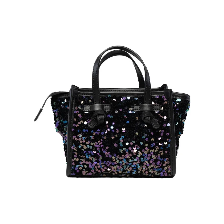 Black sequin Bag with leather handle and removable shoulder-strap from Gianni Chiarini. measures: 19x15x10 cm.. made in italy. . Composition: leather. Made in Italy. GENERAL Color: Black INFORMATION Brand: Gianni Chiarini Gender: Womens Model: BS 8065 GLAM 4248 ADDITIONAL INFO Jomashop Sku: Z-MF99G Department: Bags Category: Shoulder Bag