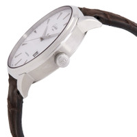Silver-tone stainless steel case with a brown alligator leather strap. Fixed stainless steel bezel. Silver dial with silver-tone hands and index hour markers. Minute markers around the outer rim. Dial Type: Analog. Date display at the 4 o'clock position. Glashutte Calibre 36-03 Automatic movement, based upon 36-01, containing 41 Jewels, bitting at 28800 vph, and has a power reserve of approximately 100 hours. Scratch resistant sapphire crystal. Pull / push crown. Transparent see through case back. Round case shape, case size: 42 mm, case thickness: 12.20 mm. Fold over clasp. Water resistant at 50 meters / 165 feet. Functions: date, hour, minute, second. Senator Excellence Panorama Date Series. Sport watch style. Watch label: Made in Germany. Glashutte Original Senator Excellence Panorama Date Automatic Silver Dial Men's Watch 1-36-03-05-02-51. GENERAL Box Type: Original Box CASE Case Size: 42 Case Thickness: 12.20 mm Case Material: Stainless Steel Case Shape: Round Case Back: Transparent See Through BAND Band Material: Alligator Leather Band Type: Strap Band Color: Brown Clasp: Fold Over DIAL Dial Color: Silver Type: Analog Crystal: Scratch Resistant Sapphire Hands: Silver-tone Dial Markers: Index Second Markers: Minute Markers around the outer rim Bezel: Fixed Bezel Material: Stainless Steel Crown: Pull / Push INFORMATION Brand: Glashutte Original Series: Senator Excellence Panorama Date Collection Name: Senator Excellence Panorama Date Gender: Mens Model: 1-36-03-05-02-51 Watch Label: Made in Germany Movement: Automatic Engine: Glashutte Calibre 36-03 Power Reserve: 100 hours FEATURES Water Resistance: 50 meters / 165 feet Calendar: Date display at the 4 o'clock position Functions: Date, Hour, Minute, Second Watch Features: Alligator Leather, Analog, Leather, Stainless Steel ADDITIONAL INFO Watch Style: Sport Warranty: 2 Year Jomashop Warranty Jomashop Sku: GLSH13603050251 Department: Watches