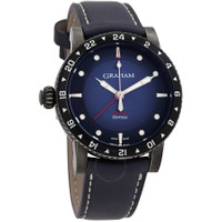 Black stainless steel case with a blue leather strap. Uni-directional rotating black stainless steel bezel. Blue dial with silver-tone hands and index hour markers. Dial Type: Analog. Luminescent hands and markers. Automatic movement. Scratch resistant sapphire crystal. Transparent case back. Round case shape, case size: 44mm. Tang clasp. Water resistant at 100 meters / 330 feet. Functions: GMT, second time zone, hour, minute, second. Fortress Gmt Series. Sport watch style. Watch label: Swiss Made. Graham Fortress GMT Automatic Blue Dial Men's Watch 2FOBV.U03A. INFORMATION Brand: Graham Series: Fortress Gmt Collection Name: Fortress GMT Gender: Mens Model: 2FOBV.U03A Watch Label: Swiss Made Movement: Automatic CASE Case Size: 44mm Case Material: Stainless Steel Case Shape: Round Case Back: Transparent BAND Band Material: Leather Band Type: Strap Band Color: Blue Clasp: Tang DIAL Dial Color: Blue Type: Analog Crystal: Scratch Resistant Sapphire Hands: Silver-tone Dial Markers: Index Luminiscence: Hands and Markers Bezel: Uni-directional Rotating Bezel Color: Black Bezel Material: Stainless Steel FEATURES Water Resistance: 100 meters / 330 feet Functions: GMT, Second Time Zone, Hour, Minute, Second Watch Features: Time Zone, Stainless Steel, Leather, GMT, Analog ADDITIONAL INFO Watch Style: Sport Warranty: 2 Year Jomashop Warranty Jomashop Sku: GH2FOBVU03A Department: Watches Category: Watches