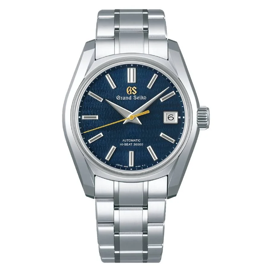 Silver-tone stainless steel case and bracelet. Fixed silver-tone stainless steel bezel. Deep blue dial with silver-tone hands and index hour markers. Minute markers around the outer rim. Dial Type: Analog. Date display at the 3 o'clock position. Grand Seiko Caliber 9S85 Automatic movement, containing 37 Jewels, bitting at 36000 vph, and has a power reserve of approximately 55 hours. Scratch resistant sapphire crystal. Screw down crown. Transparent see through case back. Round case shape, case size: 40 mm, case thickness: 12.9 mm. Band width: 21 mm. Fold over clasp with a safety release. Water resistant at 100 meters / 330 feet. Functions: date, hour, minute, second. Heritage Series. Watch label: Japan Movt. Grand Seiko Heritage Automatic Men's Watch SBGH353G. GENERAL Box Type: Original Box CASE Case Diameter: 40 mm Case Thickness: 12.9 mm Case Material: Stainless Steel Case Shape: Round Case Back: Transparent See Through BAND Band Material: Stainless Steel Band Type: Bracelet Band Color: Silver-tone Band Width: 21 mm Clasp: Fold Over with Safety Release DIAL Dial Color: Deep Blue Type: Analog Crystal: Scratch Resistant Sapphire Hands: Silver-tone Dial Markers: Index Second Markers: Minute Markers around the outer rim Bezel: Fixed Bezel Color: Silver-tone Bezel Material: Stainless Steel Crown: Screw Down INFORMATION Brand: Grand Seiko Series: Heritage Collection Name: Heritage Gender: Mens Model: SBGH353G Watch Label: Japan Movt Movement: Automatic Engine: Grand Seiko Caliber 9S85 Power Reserve: 55 hours FEATURES Water Resistance: 100 meters / 330 feet Calendar: Date display at the 3 o'clock position Functions: Date, Hour, Minute, Second Watch Features: Stainless Steel, Analog ADDITIONAL INFO Warranty: 2 Year Jomashop Warranty Jomashop Sku: GSSBGH353G Department: Watches
