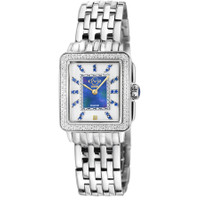Stainless steel case with a stainless steel bracelet. Fixed (diamond-cut) stainless steel bezel. White (blue mother of pearl center) dial with gold-tone hands and blue spinel index hour markers. A single diamond is set at the 6 o'clock position. Dial Type: Analog. Ronda caliber 762 quartz movement. Scratch resistant sapphire crystal. Pull / push crown. Solid case back. Rectangle case shape. Case size: 27 mm. Case thickness: 9.5 mm. Band width: 18 mm. Deployment with push button release clasp. Water resistant at 50 meters / 165 feet. Functions: hour, minute. Padova Gemstone Series. Fashion watch style. Watch label: Swiss Movt. GV2 by Gevril Padova Gemstone Diamond Mother of Pearl Dial Ladies Watch 12332B. INFORMATION Brand: Gv2 By Gevril Series: Padova Gemstone Collection Name: Padova Gemstone Gender: Womens Model: 12332B Watch Label: Swiss Movt Movement: Quartz Engine: Ronda Caliber 762 CASE Case Size: 27 mm Case Thickness: 9.5 mm Case Material: Stainless Steel Case Shape: Rectangle Case Back: Solid BAND Band Material: Stainless Steel Band Type: Bracelet Band Color: Silver-tone Band Width: 18 mm Clasp: Deployment with Push Button Release DIAL Dial Color: White (Blue Mother of Pearl Center) Type: Analog Crystal: Scratch Resistant Sapphire Hands: Gold-tone Dial Markers: Blue Spinel Index Second Markers: Diamond set at the 6 o'clock position Bezel: Fixed (Diamond-cut) Bezel Color: Silver-tone Bezel Material: Stainless Steel Crown: Pull / Push FEATURES Water Resistance: 50 meters / 165 feet Functions: Hour, Minute Watch Features: Diamond, Stainless Steel, Gold, Analog ADDITIONAL INFO Watch Style: Fashion Warranty: With Manufacturers Guarantee UPC Code: 840840125255 Additional Info: 22 Blue Spinel Gemstones/1 diamond on dial, Diamond Cut ring on dial Jomashop Sku: Y-162833 Department: Watches Category: Watches