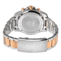 Silver-tone stainless steel case with a two-tone (silver-tone and rose gold-tone) stainless steel bracelet. Fixed rose gold-tone stainless steel bezel. Grey dial with rose gold-tone hands and Roman numeral hour markers. Minute markers around the outer rim. Dial Type: Analog. Luminescent hands and markers. Date display at the 3 o'clock position. Chronograph - three sub-dials displaying: 60 second, 30 minute and 1/10th of a second. Ronda Caliber 3540.D quartz movement. Scratch resistant sapphire crystal. Pull / push crown. Solid case back. Round case shape, case size: 45 mm, case thickness: 12 mm. Band width: 18 mm. Fold over clasp. Water resistant at 100 meters / 330 feet. Functions: chronograph, date, hour, minute, small second. T38 Series. Luxury watch style. Watch label: Swiss Made. GV2 by Gevril T38 Chronograph Quartz Grey Dial Men's Watch 42809B. GENERAL Box Type: Original Box CASE Case Thickness: 12 mm Case Material: Stainless Steel Case Shape: Round Case Back: Solid BAND Band Material: Stainless Steel Band Type: Bracelet Band Color: Two-tone (Silver-tone and Rose Gold-tone) Band Width: 18 mm Clasp: Fold Over DIAL Dial Color: Grey Type: Analog Crystal: Scratch Resistant Sapphire Hands: Rose Gold-tone Dial Markers: Roman Numeral Second Markers: Minute Markers around the outer rim Sub Dials: Three - 60 Second, 30 Minute and 1/10th of a Second Luminiscence: Hands and Markers Bezel: Fixed Bezel Color: Rose Gold-tone Bezel Material: Stainless Steel Crown: Pull / Push INFORMATION Brand: Gv2 By Gevril Series: T38 Collection Name: T38 Gender: Mens Model: 42809B Watch Label: Swiss Made Movement: Quartz Engine: Ronda Caliber 3540.D FEATURES Water Resistance: 100 meters / 330 feet Calendar: Date display at the 3 o'clock position Functions: Chronograph, Date, Hour, Minute, Small Second Watch Features: Analog, Gold, Stainless Steel, Chronograph ADDITIONAL INFO Watch Style: Luxury Warranty: With Manufacturers Guarantee UPC Code: 840840151063 Jomashop Sku: Y-A5VUY Department: Watches