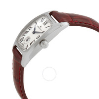 Silver-tone stainless steel case with a red calf leather strap. Fixed bezel. White dial with blue hands and Roman numeral hour markers. Dial Type: Analog. One subdial displaying: one- small seconds. Quartz movement. Scratch resistant mineral crystal. Rectangle case shape, case size: 23,5 mm x 27,40 mm. Band width: 16 mm. Water resistant at 50 meters / 165 feet. American Classic Series. Dress watch style. Watch label: Swiss Made. Hamilton American Classic Quartz White Dial Ladies Watch H13321811. INFORMATION Brand: Hamilton Series: American Classic Collection Name: American Classic Gender: Womens Model: H13321811 Watch Label: Swiss Made Movement: Quartz CASE Case Size: 23,5 mm x 27,40 mm Case Material: Stainless Steel Case Shape: Rectangle Case Back: Solid BAND Band Material: Calf Leather Band Type: Strap Band Color: Red Band Width: 16 mm Clasp: Tang DIAL Dial Color: White Type: Analog Crystal: Scratch Resistant Mineral Hands: Blue Dial Markers: Roman Numeral Sub Dials: One- Small Seconds Bezel: Fixed FEATURES Water Resistance: 50 meters / 165 feet Functions: Hour, Minute, Second Watch Features: Stainless Steel, Leather, Analog ADDITIONAL INFO Watch Style: Dress Warranty: 2 Year Jomashop Warranty UPC Code: 7640167046669 Jomashop Sku: HML-H13321811 Department: Watches Category: Watches