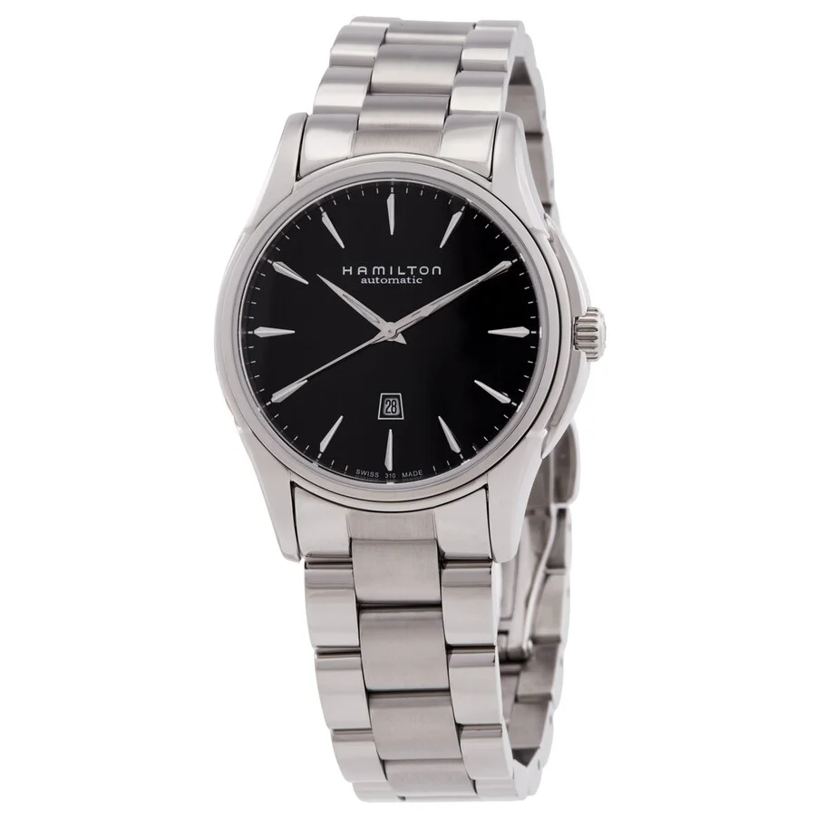 Stainless steel case with a stainless steel bracelet. Fixed bezel. Black dial with silver-tone hands and index hour markers. Minute markers around the outer rim. Date display appears at the 3 o'clock position. Automatic movement. Scratch resistant sapphire crystal. Transparent case back. Case diameter: 34 mm. Case thickness: 10 mm. Deployment clasp. Water resistant at 50 meters/ 165 feet. Functions: hours, minutues, seconds, date. Hamilton Jazzmaster Black Dial Men's Watch H32315131. GENERAL Box Type: Original Box Color: Black CASE Case Diameter: 34 mm Case Thickness: 10 mm Case Material: Stainless Steel Case Shape: Round Case Back: Transparent BAND Band Material: Stainless Steel Band Type: Bracelet Clasp: Deployment DIAL Dial Color: Black Type: Analog Crystal: Scratch Resistant Sapphire Hands: Silver-tone Dial Markers: Index Second Markers: Minute Markers Around The Outer Rim Bezel: Fixed INFORMATION Brand: Hamilton Series: Jazzmaster Collection Name: Jazzmaster Gender: Mens Model: H32315131 Watch Label: Swiss Made Movement: Automatic Engine: ETA Caliber 2671 Power Reserve: 38 hours FEATURES Water Resistance: 50 meters / 165 feet Calendar: Date display at the 3 o'clock position Functions: Hours, Minutues, Seconds, Date Watch Features: Analog, Stainless Steel ADDITIONAL INFO Watch Style: Casual Warranty: 2 Year Jomashop Warranty UPC Code: 7640127753507 Jomashop Sku: HML-H32315131 Department: Watches Category: Watches