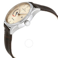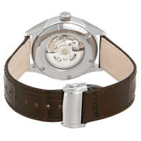 Stainless steel case with a brown leather strap. Fixed stainless steel bezel. Beige dial with luminous silver-tone hands and index hour markers. Minute markers around the outer rim. Dial Type: Analog. Luminescent hands. Date display at the 3 o'clock position. Power reserve indicator. Hamilton calibre H-13 automatic movement with an 80-hour power reserve. Scratch resistant sapphire crystal. Pull / push crown. Transparent case back. Round case shape. Case size: 42 mm. Case thickness: 13 mm. Band width: 22 mm. Deployment clasp. Water resistant at 50 meters / 165 feet. Functions: date, hour, minute, second, power reserve indicator. Jazzmaster Series. Casual watch style. Watch label: Swiss Made. Hamilton Jazzmaster Power Reserve Automatic Men's Watch H32635521. CASE Case Size: 42 Case Thickness: 13 mm Case Material: Stainless Steel Case Shape: Round Case Back: Transparent BAND Band Material: Leather Band Type: Strap Band Color: Brown Band Width: 22 mm Clasp: Deployment DIAL Dial Color: Beige Type: Analog Crystal: Scratch Resistant Sapphire Hands: Luminous Silver-tone Dial Markers: Index Second Markers: Minute Markers around the outer rim Sub Dials: Power Reserve Indicator Luminiscence: Hands Bezel: Fixed Bezel Color: Silver-tone Bezel Material: Stainless Steel Crown: Pull / Push INFORMATION Brand: Hamilton Series: Jazzmaster Collection Name: Jazzmaster Gender: Mens Model: H32635521 Watch Label: Swiss Made Movement: Automatic Engine: Hamilton Calibre H-13 Power Reserve: 80 hours FEATURES Water Resistance: 50 meters / 165 feet Calendar: Date display at the 3 o'clock position Functions: Date, Hour, Minute, Second, Power Reserve Indicator Watch Features: Analog, Power Reserve Indicator, Leather, Stainless Steel ADDITIONAL INFO Watch Style: Casual Warranty: 2 Year Jomashop Warranty UPC Code: 7640167043552 Jomashop Sku: HML-H32635521 Department: Watches Category: Watches