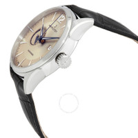 Silver-tone stainless steel case with a black calf leather strap. Fixed silver-tone stainless steel bezel. Beige dial with blue hands and index-Arabic at the 12 o' clock hour markers. Dial Type: Analog. Date display at the 3 o'clock position. One-power reserve subdials. Hamilton Calibre H-13 automatic movement with an 80-hour power reserve. Scratch resistant sapphire crystal. Round case shape, case size: 42 mm. Folding clasp. Water resistant at 50 meters / 165 feet. Functions: date, hour, minute, second, power reserve. Jazzmaster Power Reserve Series. Dress watch style. Watch label: Swiss Made. Hamilton Jazzmaster Power Reserve Automatic Men's Watch H89545721. INFORMATION Brand: Hamilton Series: Jazzmaster Power Reserve Collection Name: Jazzmaster Power Reserve Gender: Mens Model: H89545721 Watch Label: Swiss Made Movement: Automatic Engine: Hamilton Calibre H-13 Power Reserve: 80 hours CASE Case Size: 42 mm Case Material: Stainless Steel Case Shape: Round BAND Band Material: Calf Leather Band Type: Strap Band Color: Black Clasp: Folding DIAL Dial Color: Beige Type: Analog Crystal: Scratch Resistant Sapphire Hands: Blue Dial Markers: Index-Arabic at the 12 o' clock Sub Dials: One-Power Reserve Bezel: Fixed Bezel Color: Silver-tone Bezel Material: Stainless Steel FEATURES Water Resistance: 50 meters / 165 feet Calendar: Date display at the 3 o'clock position Functions: Date, Hour, Minute, Second, Power Reserve Watch Features: Stainless Steel, Leather, Analog ADDITIONAL INFO Watch Style: Dress Warranty: 2 Year Jomashop Warranty UPC Code: 7640167048885 Jomashop Sku: HML-H89545721 Department: Watches Category: Watches