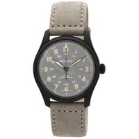 Black PVD titanium case with a cow leather strap. Fixed black PVD titanium bezel. Grey dial with black hands and Arabic numeral hour markers. Arabic numeral minute markers (at 5 minute intervals). Dial Type: Analog. Hamilton Calibre H-10 Automatic movement, based upon ETA C07.111, containing 25 Jewels, bitting at 21600 vph, and has a power reserve of approximately 80 hours. Scratch resistant sapphire crystal. Transparent case back. Round case shape, case size: 38 mm. Band width: 20 mm. Tang clasp. Water resistant at 100 meters / 330 feet. Functions: hour, minute, second. Khaki Field Series. Sport watch style. Watch label: Swiss Made. Hamilton Khaki Field Automatic Grey Dial Men's Watch H70215880. INFORMATION Brand: Hamilton Series: Khaki Field Collection Name: Khaki Field Gender: Mens Model: H70215880 Watch Label: Swiss Made Movement: Automatic Engine: Hamilton Calibre H-10 Power Reserve: 80 hours CASE Case Size: 38 mm Case Material: Titanium Case Shape: Round Case Back: Transparent BAND Band Material: Cow Leather Band Type: Strap Band Width: 20 mm Clasp: Tang DIAL Dial Color: Grey Type: Analog Crystal: Scratch Resistant Sapphire Hands: Black Dial Markers: Arabic Numeral Second Markers: Arabic Numeral Minute Markers (at 5 minute intervals) Luminiscence: Hands and Markers Bezel: Fixed Bezel Color: Black PVD Bezel Material: Titanium Crown: Pull / Push FEATURES Water Resistance: 100 meters / 330 feet Functions: Hour, Minute, Second Watch Features: Titanium, Leather, Analog ADDITIONAL INFO Watch Style: Sport Warranty: 2 Year Jomashop Warranty UPC Code: 7630458803279 Jomashop Sku: HML-H70215880 Department: Watches Category: Watches