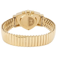 Gold-tone PVD stainless steel case and bracelet. Fixed bezel. Silver dial with gold-tone hands and index hour markers. Dial Type: Analog. Date display at the 4 o'clock position. Chronograph - three sub-dials displaying: 60 second, 30 minute and 12 hours. Caliber 251.474 quartz movement. Pull / push crown. Solid case back. Triangle case shape, case size: 32,3mm x 50,3mm. Band width: 17 mm. Deployment clasp. Water resistant at 50 meters / 165 feet. Functions: chronograph, date, hour, minute, second. Ventura Series. Watch label: Swiss Made. Hamilton Ventura Chronograph Quartz Silver Dial Men's Watch H24422151. INFORMATION Brand: Hamilton Series: Ventura Collection Name: Ventura Gender: Mens Model: H24422151 Watch Label: Swiss Made Movement: Quartz Engine: Caliber 251.474 CASE Case Size: 32,3mm x 50,3mm Case Material: Stainless Steel Case Shape: Triangle Case Back: Solid BAND Band Material: Stainless Steel Band Type: Bracelet Band Color: Gold-tone PVD Band Width: 17 mm Clasp: Deployment DIAL Dial Color: Silver Type: Analog Hands: Gold-tone Dial Markers: Index Second Markers: Minute Markers around the outer rim Sub Dials: Three - 60 Second, 30 Minute and 12 Hours Bezel: Fixed Bezel Color: Gold-tone PVD Bezel Material: Stainless Steel Crown: Pull / Push FEATURES Water Resistance: 50 meters / 165 feet Calendar: Date display at the 4 o'clock position Functions: Chronograph, Date, Hour, Minute, Second Watch Features: Chronograph, Stainless Steel, Gold, Analog ADDITIONAL INFO Warranty: 2 Year Jomashop Warranty UPC Code: 7640167049349 Jomashop Sku: HML-H24422151 Department: Watches Category: Watches