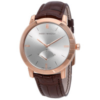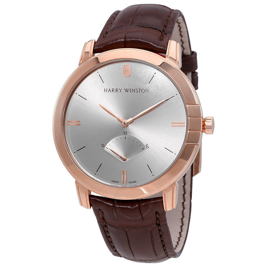 Rose gold-tone 18 carat rose gold case with a brown alligator leather strap. Fixed rose gold-tone 18 carat rose gold bezel. Silver dial with rose gold-tone hands and index hour markers. Dial Type: Analog. One- retrograde second subdials. Harry Winston Calibre HW2101 automatic movement with a 72-hour power reserve. Scratch resistant sapphire crystal. Case size: 42 mm. Round case shape. Water resistant at 30 meters / 100 feet. Functions: hour, minute, retrograde second. Luxury watch style. Watch label: Swiss Made. Harry Winston Midnight Retrograde Silver Dial Automatic Men's Watch MIDARS42RR001. GENERAL Box Type: Original Box CASE Case Size: 42 Case Material: 18kt Rose Gold Case Shape: Round BAND Band Material: Alligator Leather Band Type: Strap Band Color: Brown DIAL Dial Color: Silver Type: Analog Crystal: Scratch Resistant Sapphire Hands: Rose Gold-tone Dial Markers: Index Sub Dials: One - Retrograde Second Bezel: Fixed Bezel Color: Rose Gold-tone Bezel Material: 18kt Rose Gold INFORMATION Brand: Harry Winston Series: Midnight Retrograde Collection Name: Midnight Retrograde Gender: Mens Model: MIDARS42RR001 Watch Label: Swiss Made Movement: Automatic Engine: Harry Winston Calibre HW2101 Power Reserve: 72 hours FEATURES Water Resistance: 30 meters / 100 feet Functions: Hour, Minute, Retrograde Second Watch Features: Retrograde, Alligator Leather, Analog, Gold, Leather ADDITIONAL INFO Watch Style: Luxury Warranty: 2 Year Jomashop Warranty Jomashop Sku: HWMIDARS42RR001 Department: Watches Category: Watches