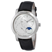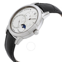 18kt white gold case with a black alligator leather strap. Fixed 18kt white gold bezel. Silver-tone dial with silver-tone leaf-style shape hands and index hour markers. Dial Type: Analog. Date display at the 7 o'clock position. Two sub-dials displaying: date and moon phase. Harry Winston Calibre HW3203 Automatic movement, containing 28 Jewels, bitting at 28800 vph, and has a power reserve of approximately 68 hours. Scratch resistant sapphire crystal. Transparent see through case back. Round case shape, case size: 42 mm, case thickness: 10.2 mm. Pin buckle clasp. Water resistant at 30 meters / 100 feet. Functions: date, hour, minute, moon phase. Midnight Series. Luxury watch style. Watch label: Swiss Made. Harry Winston Midnight Silver Dial Automatic Men's Moon Phase Watch MIDAMP42WW003. GENERAL Box Type: Original Box CASE Case Size: 42 Case Thickness: 10.2 mm Case Material: 18kt White Gold Case Shape: Round Case Back: Transparent See Through BAND Band Material: Alligator Leather Band Type: Strap Band Color: Black Clasp: Pin Buckle DIAL Dial Color: Silver-tone Type: Analog Crystal: Scratch Resistant Sapphire Hands: Silver-tone Leaf-style shape Dial Markers: Index Sub Dials: Two - Date and Moon Phase Bezel: Fixed Bezel Material: 18kt White Gold INFORMATION Brand: Harry Winston Series: Midnight Collection Name: Midnight Gender: Mens Model: MIDAMP42WW003 Watch Label: Swiss Made Movement: Automatic Engine: Harry Winston Calibre HW3203 Power Reserve: 68 hours FEATURES Water Resistance: 30 meters / 100 feet Calendar: Date display at the 7 o'clock position Functions: Date, Hour, Minute, Moon Phase Watch Features: Alligator Leather, Analog, Gold, Leather, Moon Phase ADDITIONAL INFO Watch Style: Luxury Warranty: 2 Year Jomashop Warranty Jomashop Sku: HWMIDAMP42WW003 Department: Watches Category: Watches