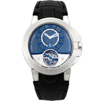 Silver-tone stainless steel case with a black leather strap. Fixed silver-tone stainless steel bezel. Transparent dial with silver-tone hands and Arabic numeral hour markers. Dial Type: Analog. Automatic movement. Scratch resistant sapphire crystal. Screw down crown. Transparent see through case back. Round case shape, case size: 44 mm. Buckle clasp. Water resistant at 100 meters / 330 feet. Functions: hour, minute, second. Ocean Tourbillon Series. Luxury watch style. Harry Winston Ocean Tourbillon Automatic Men's Watch OCEATO44WW002. GENERAL Box Type: Original Box CASE Case Size: 44 Case Material: Stainless Steel Case Shape: Round Case Back: Transparent See Through BAND Band Material: Leather Band Type: Strap Band Color: Black Clasp: Buckle DIAL Dial Color: Transparent Type: Analog Crystal: Scratch Resistant Sapphire Hands: Silver-tone Dial Markers: Arabic Numeral Bezel: Fixed Bezel Color: Silver-tone Bezel Material: Stainless Steel Crown: Screw Down INFORMATION Brand: Harry Winston Series: Ocean Tourbillon Collection Name: Ocean Tourbillon Gender: Mens Model: OCEATO44WW002 Movement: Automatic FEATURES Water Resistance: 100 meters / 330 feet Functions: Hour, Minute, Second Watch Features: Analog, Leather, Stainless Steel, Tourbillon ADDITIONAL INFO Watch Style: Luxury Warranty: 2 Year Jomashop Warranty Jomashop Sku: HWOCEATO44WW002 Department: Watches