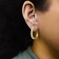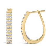 Immerse yourself in the sublime elegance of these exquisite hoop earrings, masterfully crafted from 10K yelow gold and adorned with a total of 1.0 carat of natural diamonds. Each earpiece shimmers with a captivating dance of light, thanks to a meticulous alternating arrangement of round and baguette-cut diamonds that alternate along its graceful 'U' shape. These hoops boast enhanced brilliance and resilience, inviting admiration and envy in equal measure. The color grade of I-J and clarity of I2-I3 ensure a luminous glow that complements any ensemble, while the hinge back closure promises a secure and plush fit, making them perfect for both grand evenings and everyday elegance. Bathed in luxury, these earrings are not just accessories but a celebration of craftsmanship and style, designed to be treasured for generations. Haus of Brilliance Ladies Earrings. Hoop Earrings series. SKU: 023164EYDM. Color: Yellow. Metal Type: Gold. Metal Stamp: 10k. Metal Weight: 7.02g. Gem stone type: Diamond. Stone weight: 0.6ct. Number of stones: 60. Stone clarity: I2-I3. Stone shape: Round. Stone color: I-J. Earrings style: Hoop. Haus of Brilliance 10K Yellow Gold 1.0 Cttw Alternating Diamond "U" Hoop Earrings (I-J Color, I2-I3 Clarity). GENERAL Stone Shape: Round Color: Yellow Collection Name: Hoop Earrings INFORMATION Brand: Haus Of Brilliance Series: Hoop Earrings Gender: Womens Model: 023164EYDM DETAILS Earrings: Hoop Ring Style: Fashion Material : Gold Metal Stamp: 10K Metal Weight: 7.02 Stone Type: Diamond Stone Weight: 0.6 Stone Color: I-J Stone Cut: Round Stone Clarity: I2-I3 Stone Origin: Natural Total Stones: 60 ADDITIONAL INFO Jomashop Sku: Y-A5DX5 Department: Jewelry Category: Earrings