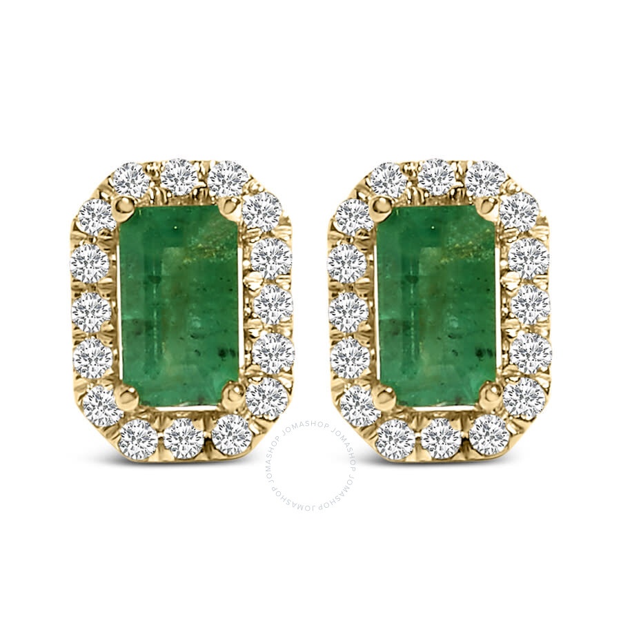 Immerse yourself in the unending elegance of these 14K yellow gold stud earrings, each presenting a mesmerizing, emerald-cut green emerald at its heart. Natural and treated delicately with oil to enhance its lush verdant hues, these 5x3 mm gemstones hark back to the regal opulence of bygone eras. Encapsulating each emerald, a radiant halo of natural white diamonds, cumulatively weighing 1/8 carat, adds a glittering contrast, further illuminating the exquisite octagonal silhouette of the setting. Designed with an eye for timeless sophistication and secured with comfortable push back closures, these earrings promise not just an accessory but a lifetime keepsake, subtly elevating everyday attire and enriching those special moments with a sprinkle of splendor. Haus of Brilliance Ladies Earrings. Emerald And Diamond Stud Earring series. SKU: 023239EASH. Color: Yellow. Metal Type: Gold. Metal Stamp: 14k. Metal Weight: 0.81g. Gem stone type: Emerald. Stone weight: 0.7ct. Number of stones: 34. Stone shape: Emerald. Stone color: Green. Earrings style: Stud. Haus of Brilliance 14K Yellow Gold Green Emerald and 1/8 Cttw Diamond Halo Octagonal Shaped Stud Earrings. GENERAL Box: No Papers: No Stone Shape: Emerald Color: Yellow Collection Name: Emerald And Diamond Stud Earring INFORMATION Brand: Haus Of Brilliance Series: Emerald And Diamond Stud Earring Gender: Womens Model: 023239EASH DETAILS Earrings: Stud Material : Gold Metal Stamp: 14K Metal Weight: 0.81 Stone Type: Emerald Stone Weight: 0.7 Stone Color: Green Stone Cut: Emerald Stone Origin: Natural Total Stones: 34 ADDITIONAL INFO Additional Info: Gemstone MM Size: Emerald: 3 x 5; Gemstone Count: 2; Diamond Total Weight: 0.144; Total Diamond Count: 32 Jomashop Sku: Y-A5883 Department: Jewelry Category: Earrings